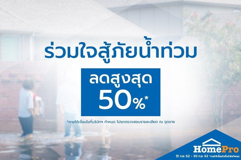 โฮมโปรขนสินค้า ทุบราคาช่วยน้ำท่วม รองรับการฟื้นฟู ซ่อมแซม ตั้งแต่วันนี้ – 30 ก.ย.นี้ ที่โฮมโปรและเมกาโฮม ทั่วประเทศ