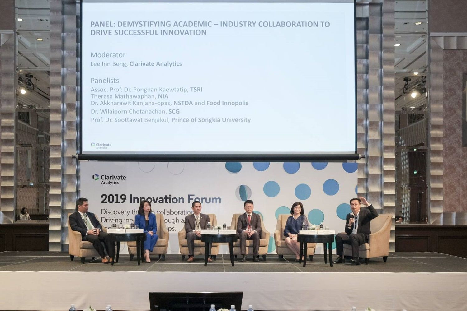 คลาริเวท อนาลิติคส์ บริษัทที่พัฒนาระบบฐานข้อมูลและโซลูชั่นต่างๆ เพื่อสนับสนุนงานวิจัยทั้งระบบ ตั้งแต่การสืบค้น ไปจนถึงการทำให้งานวิจัยได้รับการต่อยอดไปถึงภาคอุตสาหกรรม และทำให้นวัตกรรมที่ได้จากงานวิจัยได้รับการคุ้มครองผ่านการจดสิทธิบัตรในรูปของทรัพย์สินทางปัญญา เป็นเจ้าภาพจัดงาน Innovation Forum 2019 ซึ่งได้รับความร่วมมือจาก สกสว. สวทช. ฯลฯ มาร่วมแชร์ประสบการณ์การทำงานร่วมกันระหว่างมหาวิทยาลัย ภาครัฐ และองค์กรเอกชน เพื่อเร่งการสร้างนวัตกรรมที่มีผลกระทบต่อสังคมและนำพาประเทศเปลี่ยนผ่านสู่ยุค Thailand 4.0 ได้อย่างยั่งยืน วันนี้ได้มีโอกาสพูดคุยกับผู้บริหารระดับสูงของทั้งสามฝ่ายซึ่งมีมุมมองที่น่าสนใจและเป็นประโยชน์ต่อการพัฒนาประเทศ