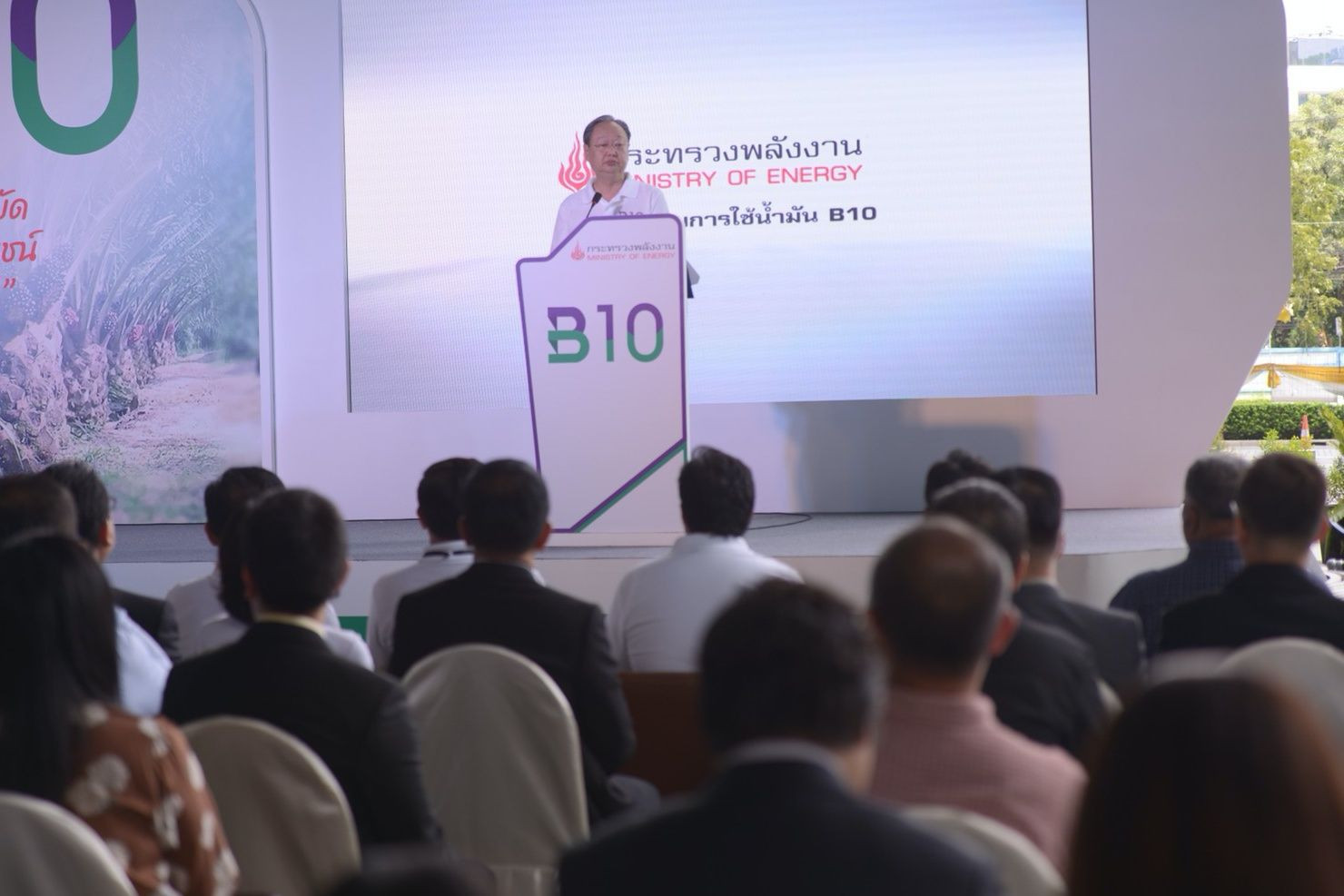 นายสนธิรัตน์ กล่าวว่า กระทรวงพลังงานก็ยังคำนึงถึงผลกระทบทางสิ่งแวดล้อมด้วย เพื่อสร้างความยั่งยืนให้แก่สังคม ด้วยการผลักดัน B10 ให้เป็นน้ำมันเกรดมาตรฐาน