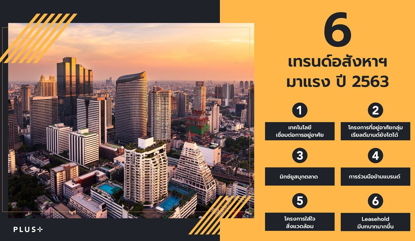 อย่างไรก็ตามในส่วนของอสังหาริมทรัพย์นั้น ผู้พัฒนาอสังหาริมทรัพย์จะหันมาให้ความสนใจกับไลฟ์สไตล์ของผู้อยู่อาศัยเพื่อชิงส่วนแบ่งการตลาดจากกลุ่ม Real Demand โดยพลัส พลัสพร็อพเพอร์ตี้ ทำการวิเคราะห์เทรนด์ที่จะเข้ามามีบทบาทต่อที่อยู่อาศัยในปี 2563 ซึ่งพบ 6 ปัจจัยหลักที่มาแรง และมีความน่าสนใจ ดังนี้