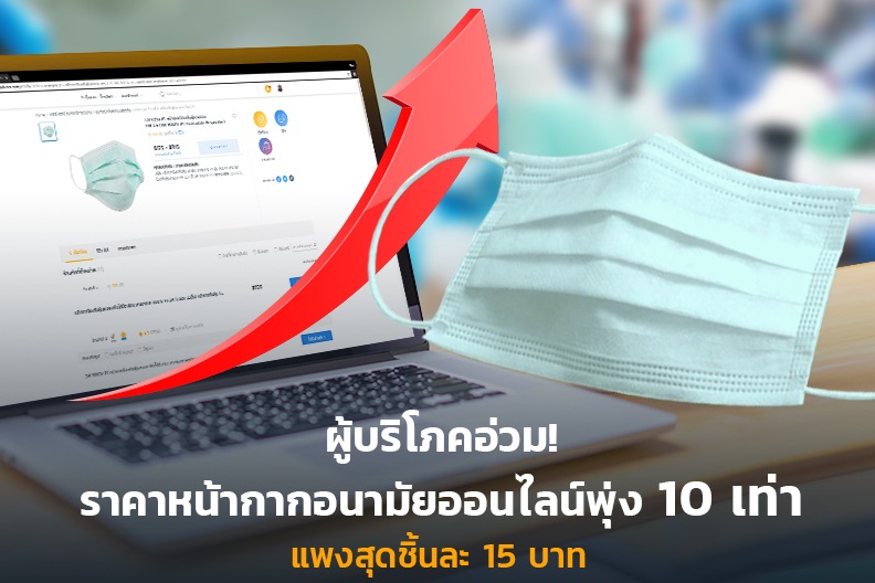ผู้บริโภคอ่วม !! ราคาหน้ากากอนามัยออนไลน์พุ่ง 10 เท่า แพงสุดชิ้นละ 15 บาท