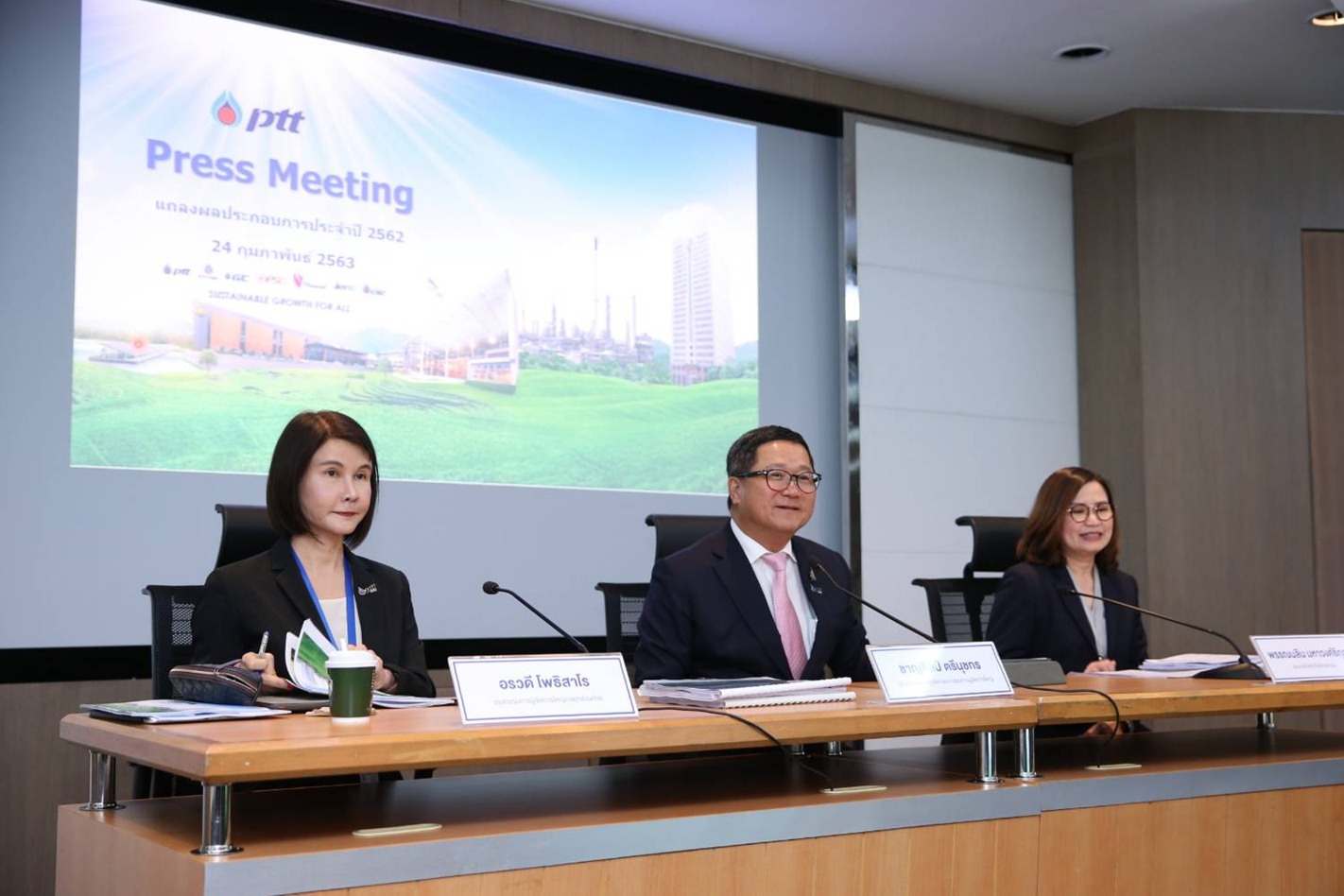 นายชาญศิลป์ กล่าวว่า ที่ประชุมคณะกรรมการ ปตท. เมื่อวันที่ 20 กุมภาพันธ์ 2563 รับทราบผลการดำเนินงาน ปตท. และได้อนุมัติการจ่ายเงินปันผลประจำปี 2562 โดย ปตท. และบริษัทย่อยมีรายได้จาก การขายและให้บริการรวม 2.2 ล้านล้านบาท และมีกำไรสุทธิ 92,951 ล้านบาท คิดเป็น 4.2% ของรายได้ ปรับลดลง 22 % เมื่อเทียบกับปีที่ผ่านมา ซึ่งเป็นไปตามภาวะเศรษฐกิจโลกชะลอตัว เนื่องจากผลกระทบของสงครามทางการค้าโลก ทำให้ความต้องการของผู้บริโภคชะลอตัวและส่งผลให้ส่วนต่างราคาน้ำมันสำเร็จรูปและราคาน้ำมันดิบ และส่วนต่างราคาผลิตภัณฑ์และวัตถุดิบของผลิตภัณฑ์ปิโตรเคมีปรับลดลง