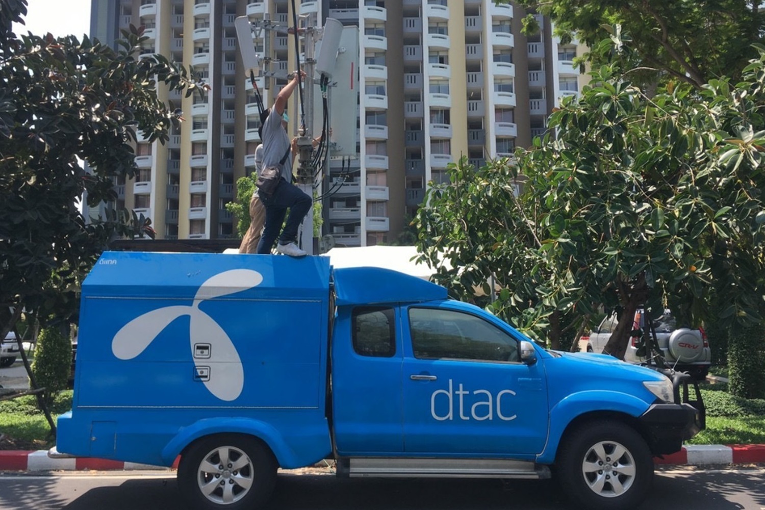 ทั้งนี้ ดีแทคได้นำรถโมบายล์ขยายสัญญาณ 4G เพื่อภารกิจสนับสนุนโรงพยาบาลธรรมศาสตร์เฉลิมพระเกียรติ ในการจัดตั้งโรงพยาบาลสนามเพื่อรองรับการรักษาผู้ป่วยโควิด-19 จำนวน 308 เตียง โดยดีแทคได้เพิ่มประสิทธิภาพของสัญญาณอินเทอร์เน็ตความเร็วสูงรองรับปริมาณผู้ใช้ที่จะเพิ่มขึ้นจากการปฏิบัติงานเพื่อระบบสาธารณสุข
