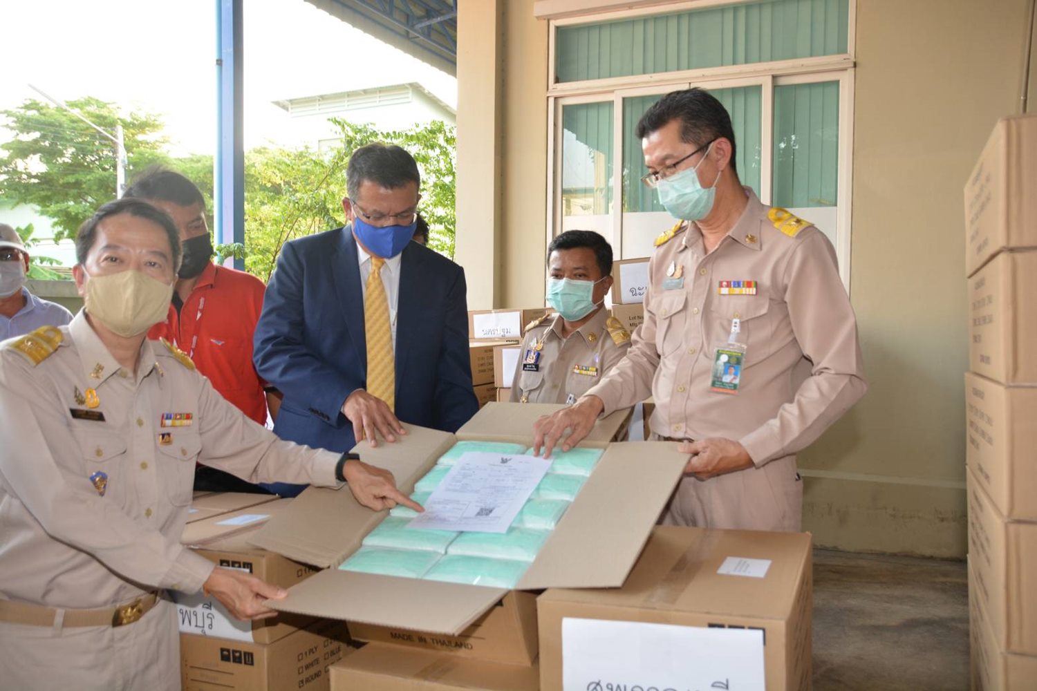 ทั้งนี้กระทรวงสาธารณสุขจะขนส่งไปยังปลายทางที่สาธารณสุขจังหวัด ส่วนของกระทรวงมหาดไทยจะขนส่งไปยังศาลากลางจังหวัด เพื่อผู้ว่าราชการจังหวัดนั้นๆ จะได้นำไปจัดสรรให้กับประชาชนกลุ่มเสี่ยง เช่น เจ้าหน้าที่ทำงานอย่างใกล้ชิดกับกลุ่มเสี่ยง อสม. พนักงานทำความสะอาดและเก็บขยะ รวมทั้งเจ้าหน้าที่ทหารและตำรวจในจุดตรวจพื้นที่เสี่ยงติดเชื้อ COVIC-19