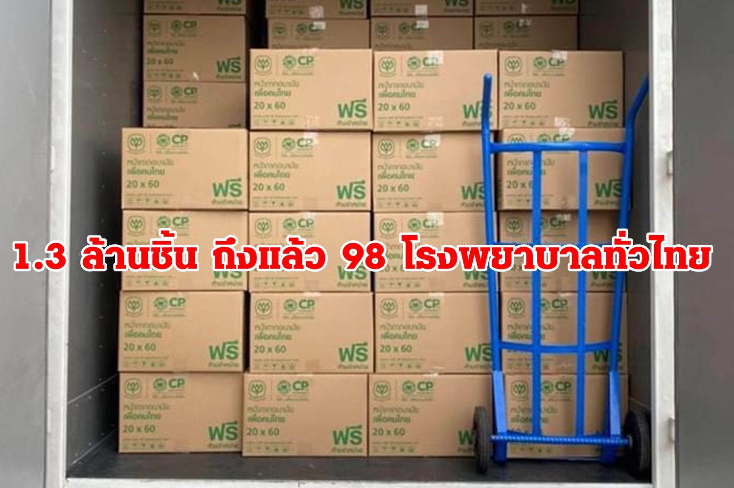 ซีพี แจกหน้ากากอนามัย 1.3 ล้านชิ้นถึงมือบุคลากรทางการแพทย์ทั่วไทยแล้ว