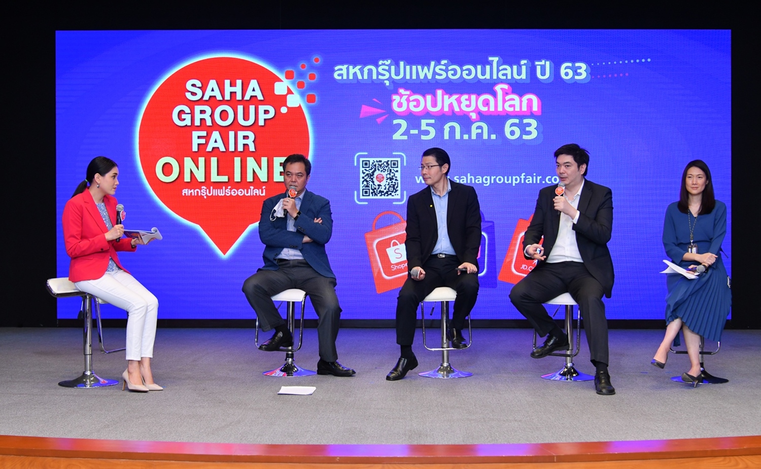 ทั้งนี้ได้ร่วมกับ LAZADA SHOPEE และ JD CENTRAL จัดงานสหกรุ๊ปแฟร์ออนไลน์ ปี 63 วันที่ 2-5 ก.ค. 2563 บน www.sahagroupfair.com โดยจะมีลิงค์จากเว็บไปยังแพลตฟอร์ม 3 ราย ซึ่งเป็นครั้งแรกที่มีการจำหน่ายสินค้าพร้อมกัน แบ่งสินค้าออกเป็น 7 หมวด คือ Fashion, Lingerie, Health & Beauty, Baby & Toddler, Household, Grocery และ Services & Education มีสินค้ามาจำหน่ายกว่า 100 แบรนด์ กว่า 20,000 SKU ซึ่งสินค้า 7 หมวดนี้ จะมีทั้งสินค้านวัตกรรม สินค้าใหม่ สินค้าขายดี และสินค้า Clearance ที่นำมาลดพิเศษสูงสุดถึง 80% ตลอด 24 ชั่วโมง เพื่อช่วยแบ่งเบาภาระค่าใช้จ่ายให้กับผู้บริโภค