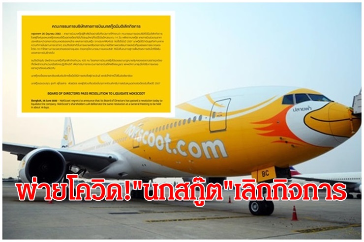 เมื่อวันที่ 26 มิ.ย. เฟซบุ๊ก สายการบินนกสกู๊ต โพสต์ข้อความระบุว่าสายการบินนกสกู๊ตรู้สึกเสียใจอย่างยิ่งที่จะประกาศให้ทราบว่า คณะกรรมการของบริษัทได้มีมติเลิกกิจการโดยผู้ถือหุ้นของนกสกู๊ตจะลงมติเป็นอย่างเดียวกัยในที่ประชุมใหญ่ที่จะมีขึ้นในอีกประมาณ 14 วัน หลังจากนกสกู๊ตสายการบินร่วมทุนราคาประหยัดระหว่างสายการบินนกแอร์ของไทยและสายการบินสกู๊ตจากประเทศสิงคโปร์ก่อตั้งขึ้นในปี 2557 นกสกู๊ตได้ดำเนินธุรกิจท่ามกลางความท้าทายในสถานการณ์ต่างๆ รวมถึงข้อจำกัดในการขยายเครือข่ายการบินภายใต้สภาพแวดล้อมการแข่งขันที่รุนแรงและการระบาดของโควิด-19 ทำให้สถานการณ์เลวร้ายลงอย่างรุนแรง ด้วยเหตุนี้คณะกรรมการของบริษัท จึงไม่เห็นหนทางสู่การฟื้นตัวและการเติบโตที่ยั่งยืนของสายการบินอีกต่อไป