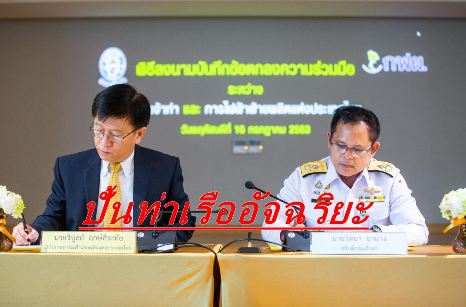 กฟผ. ลงนาม MOU กรมเจ้าท่า เดินหน้าศึกษาวิจัยท่าเรือ นำร่องพัฒนาท่าเรือพระราม 5 และท่าเรือพระราม 7 หวังขึ้นชั้นท่าเรืออัจฉริยะในอนาคต