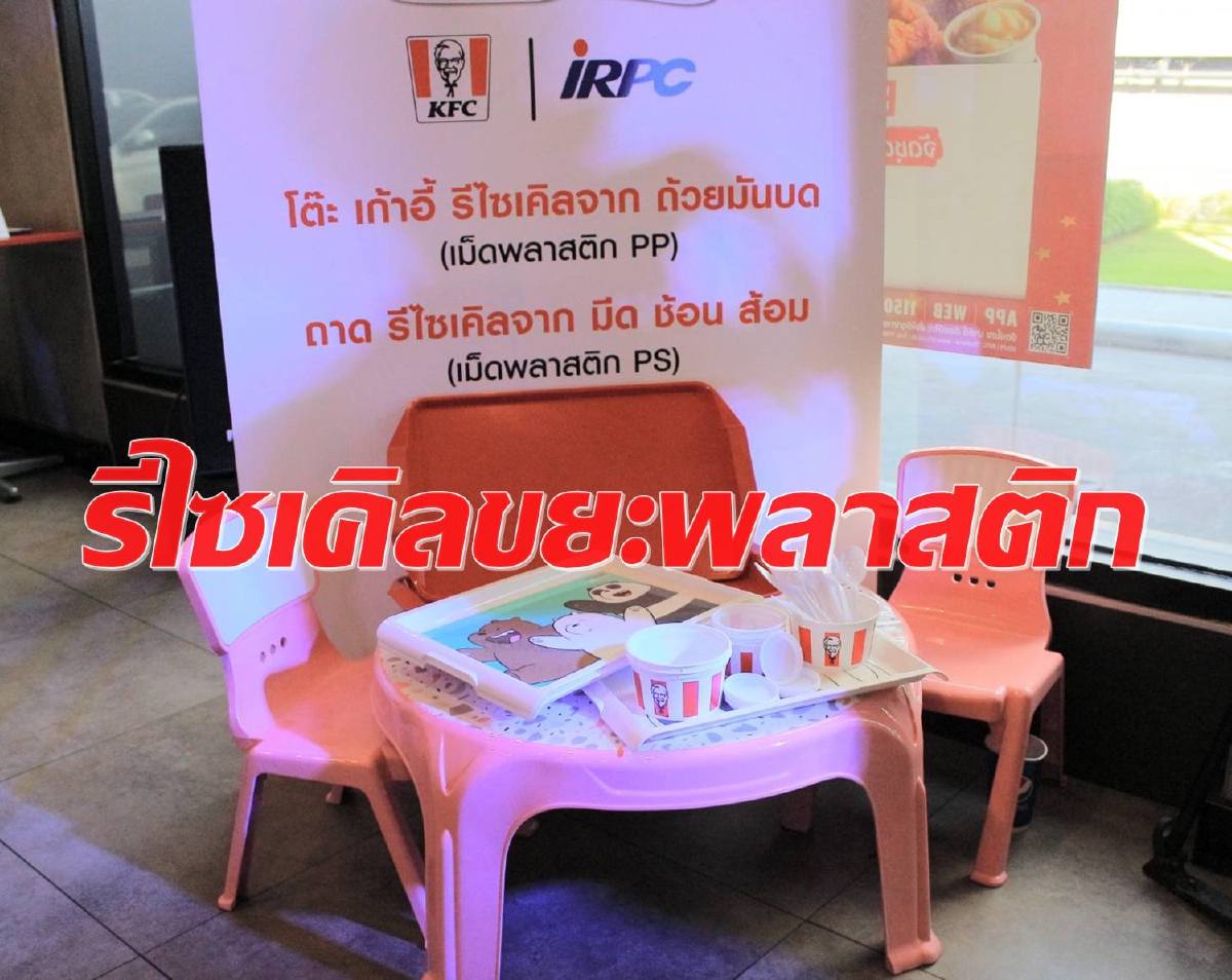 ไออาร์พีซี ผนึก KFC เดินหน้า ต้นแบบบริหารจัดการขยะพลาสติกใช้ครั้งเดียวทิ้ง ส่งรีไซเคิลแปลงสภาพ เป็น โต๊ะ เก้าอี้ ถาดอาหาร กลับมาใช้ประโยชน์ใหม่
