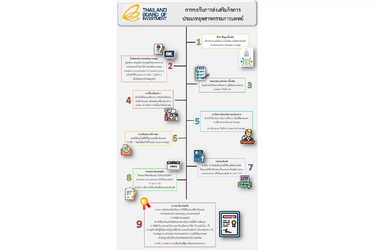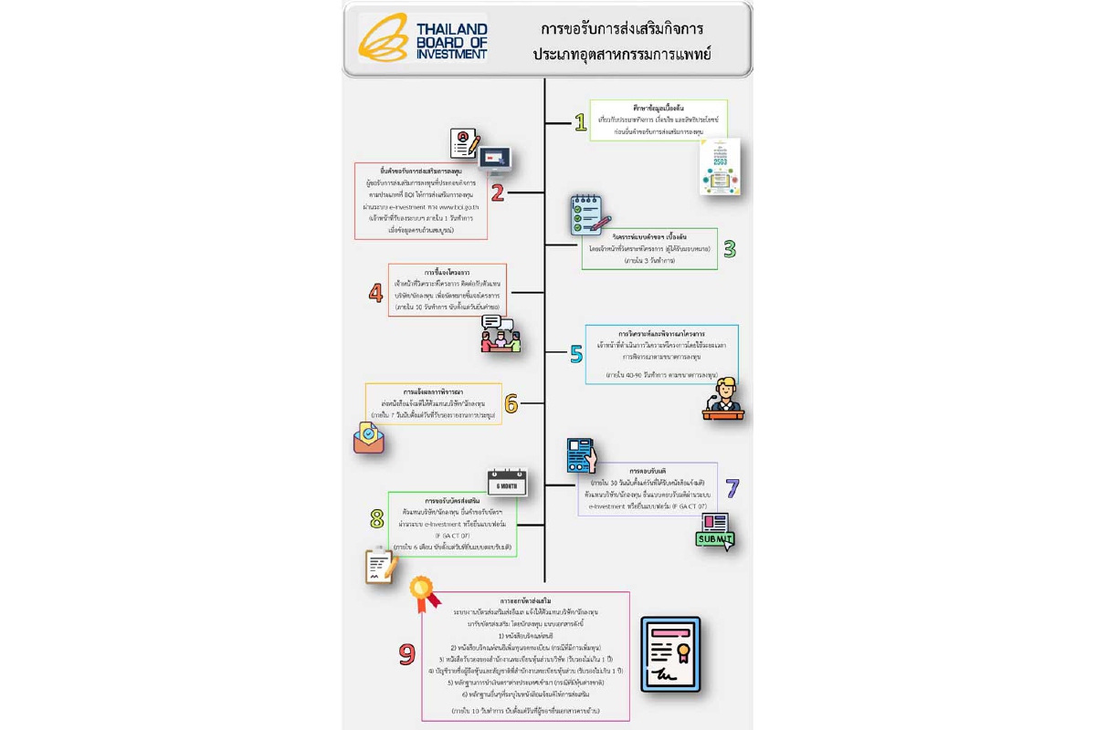 บีโอไอจึงได้จัดทำคู่มืออินโฟกราฟิกสำหรับนักลงทุนและผู้สนใจเริ่มธุรกิจในอุตสาหกรรมการแพทย์ เพื่อให้สามารถวางแผนและเตรียมความพร้อมก่อนการลงทุน
