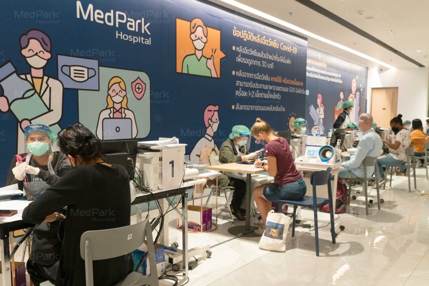 โรงพยาบาลเมดพาร์ค เปิดโครงการ Going the Extra Mile, Extra Hours ขยายเวลาการฉีดวัคซีนโควิด ในช่วงค่ำให้ชาวต่างชาติพำนักอยู่ในไทย ไม่ให้กระทบบริการประชาชนทั่วไป ในเวลาทำการทุกวัน ไม่มีวันหยุด โดยโครงการให้บริการนอกเวลาจะดำเนินการตั้งแต่เวลา