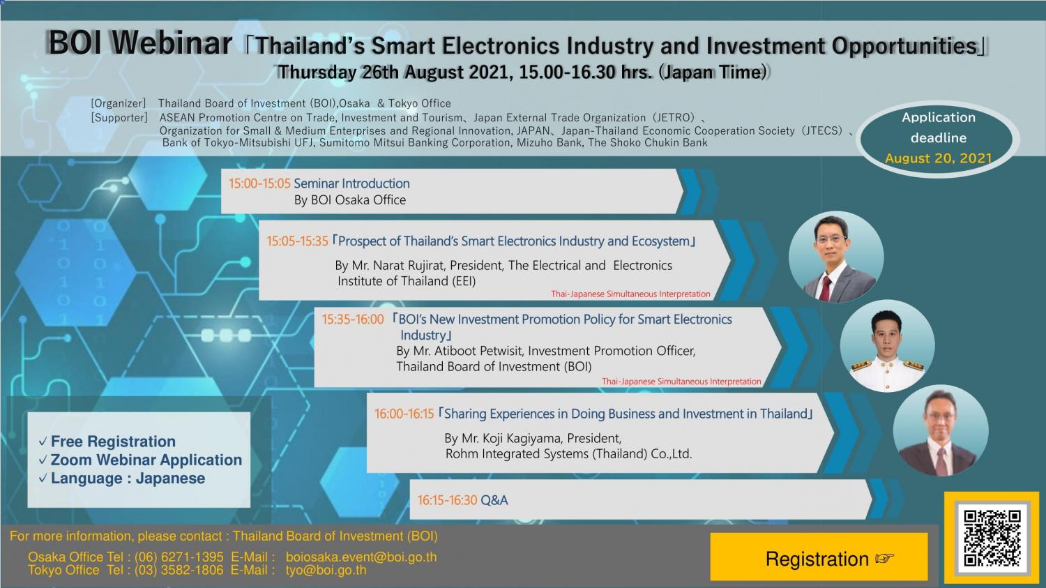 บีโอไอ ญี่ปุ่น เชิญนักลงทุนญี่ปุ่นร่วมงานสัมมนาออนไลน์ “Thailand’s Smart Electronics Industry and Investment Opportunities”