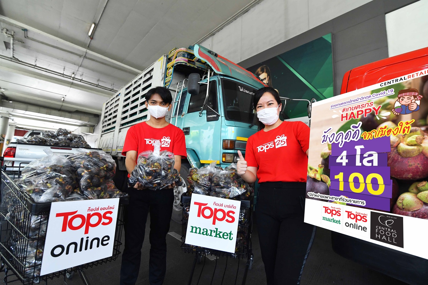 ทั้งนี้ เพื่อเป็นการช่วยเหลือเกษตรกรชาวสวนผู้ปลูกมังคุดภาคใต้อย่างเร่งด่วน ท็อปส์ และ เซ็นทรัล ฟู้ด ฮอลล์ ในเครือเซ็นทรัล รีเทล จึงได้ร่วมคิกออฟแคมเปญ “เกษตรกรแฮปปี้” จับมือ กระทรวงเกษตรและสหกรณ์ , กระทรวงพาณิชย์ รับซื้อตรงมังคุดใต้คุณภาพดี ส่งตรงจากสวน จำหน่ายในราคา 4 กิโล 100 บาท ผ่านช่องทางออฟไลน์ที่ร้านท็อปส์ มาร์เก็ต, เซ็นทรัล ฟู้ด ฮอลล์ 24 สาขาในกรุงเทพและปริมณฑล และบริการสั่งซื้อผ่านออนไลน์ที่ www.tops.co.th และแอปพลิเคชัน Grab เลือก Tops Select โดยจะเริ่มจำหน่ายตั้งแต่วันที่ 12 สิงหาคม 2564 (สินค้ามีจำนวนจำกัด)