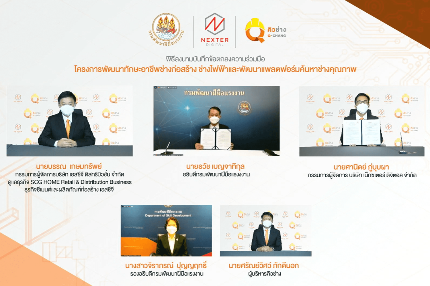 คิวช่าง ธุรกิจในเครือบริษัท เน็กซเตอร์ ดิจิตอล จำกัด ซึ่งเป็นบริษัทฯ ที่ทางบริษัท เอสซีจี ดิสทริบิวชั่น จำกัด เข้าไปลงทุน จับมือทำบันทึกข้อตกลงความร่วมมือกับกรมพัฒนาฝีมือแรงงาน เปิดตัวโครงการพัฒนาทักษะอาชีพช่างก่อสร้าง ช่างไฟฟ้า และพัฒนาแพลตฟอร์มค้นหาช่างคุณภาพ ความร่วมมือดังกล่าวนอกจากจะมุ่งเป้าพัฒนาทักษะฝีมือช่างไทย พร้อมสร้างโอกาสในการหางานให้ช่างผ่านดิจิทัลแพลตฟอร์ม “ คิวช่าง ” และ “ รวมช่าง ” แล้ว ยังเป็นอีกหนึ่งกลยุทธ์ที่สำคัญในการสร้างความแข็งแกร่งให้กับ SCG HOME ในฐานะ Key Strategic Partner ของ คิวช่าง