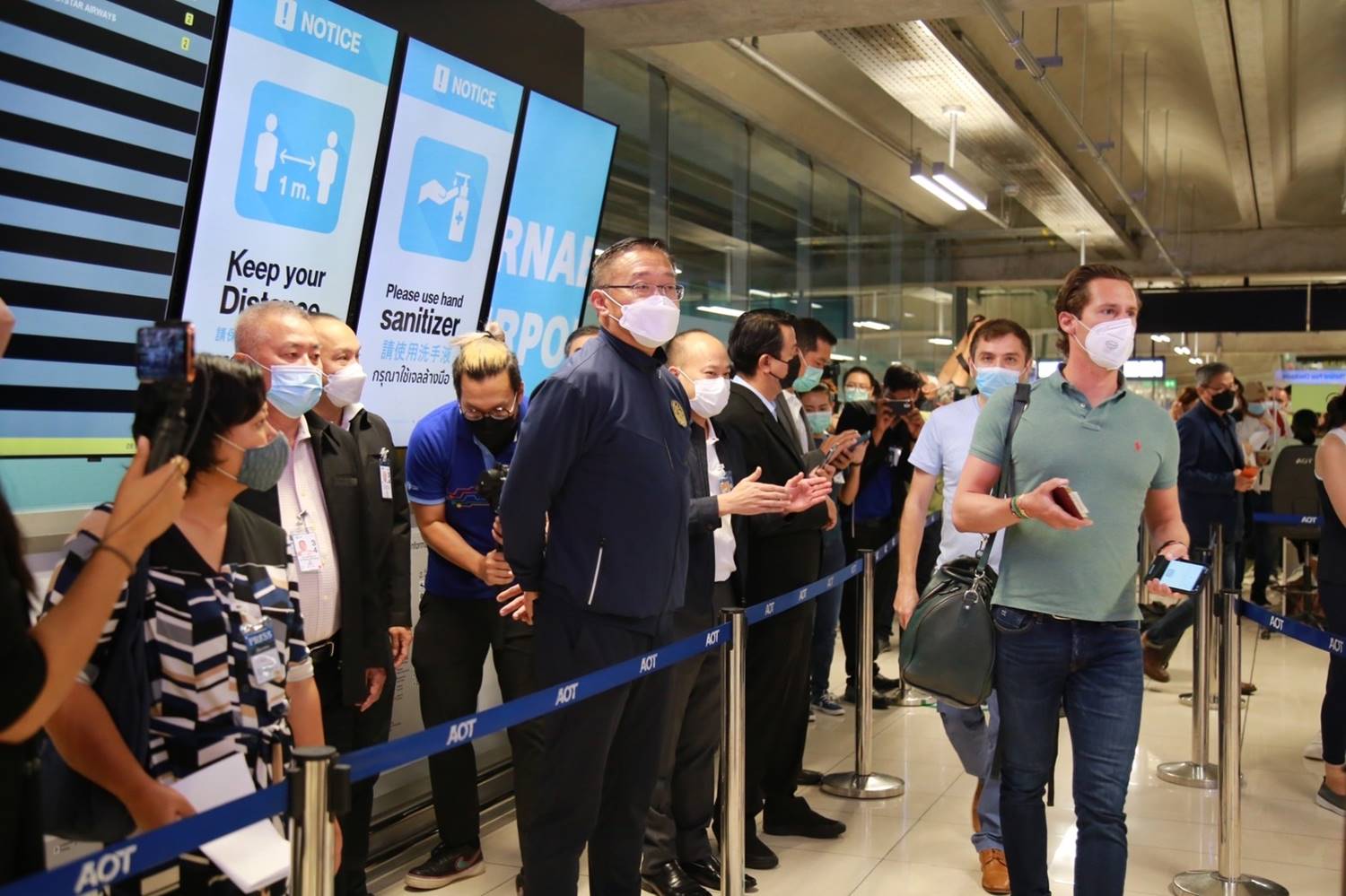 นายชยธรรม์ พรหมศร ปลัดกระทรวงคมนาคม เปิดเผยหลังลงพื้นที่ท่าอากาศยานสุวรรณภูมิ (ทสภ.) เพื่อติดตามการดำเนินงานของหน่วยงานต่าง ๆ ณ ทสภ.ในวันแรก(1พ.ค.) ของการเปิดประเทศอย่างเต็มรูปแบบว่า ภาพรวมเป็นไปด้วยความเรียบร้อย โดยเฉพาะปัญหาความหนาแน่นของผู้โดยสาร ในจุดคัดกรองนักท่องเที่ยว Thailand Pass มีการจัดเจ้าหน้าที่ประจำจุดคัดกรอง 15 คน สามารถให้บริการได้อย่างรวดเร็ว ไร้ปัญหาความล่าช้า