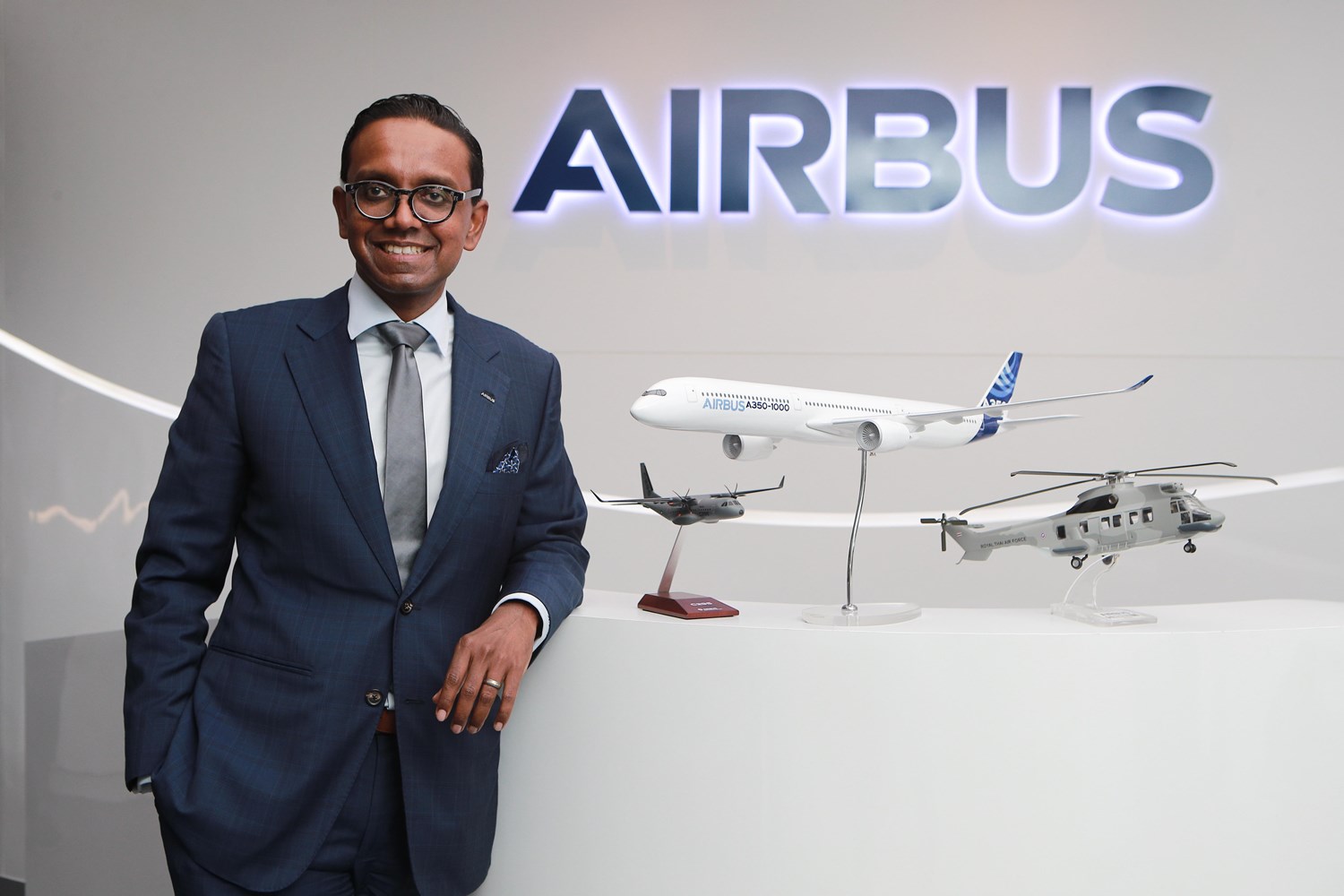 “ฝูงบินเฮลิคอปเตอร์ของประเทศไทย มีตั้งแต่เฮลิคอปเตอร์ขนาดเบาเครื่องยนต์เดี่ยวและคู่ ไปจนถึงเฮลิคอปเตอร์บรรทุกหนัก รวมถึงเอช225เอ็ม (H225M) เฮลิคอปเตอร์อเนกประสงค์รุ่นใหม่ล่าสุดของกองทัพอากาศไทย และ เอช145เอ็ม (H145M) เฮลิคอปเตอร์สำหรับขนส่งลำเลียงของกองทัพเรือไทย ในขณะเดียวกัน เครื่องบินลำเลียงทางยุทธวิธีรุ่น ซี295 (C295) มีบทบาทสำคัญสำหรับกองทัพบกโดยมีภารกิจตั้งแต่ลำเลียงกำลังพลและสิ่งของไปจนถึงการอพยพทางการแพทย์และการเคลื่อนกำลังทหารพลร่ม ในส่วนของอวกาศ แอร์บัสมีความภูมิใจที่ได้รับเลือกให้สร้างระบบข้อมูลทางภูมิศาสตร์ธีออส-2 (THEOS-2) โดยจะแล้วเสร็จและเปิดตัวในช่วงปลายปี 2565 หรือช่วงต้นปี 2566” นายสแตนลีย์กล่าวเสริม
