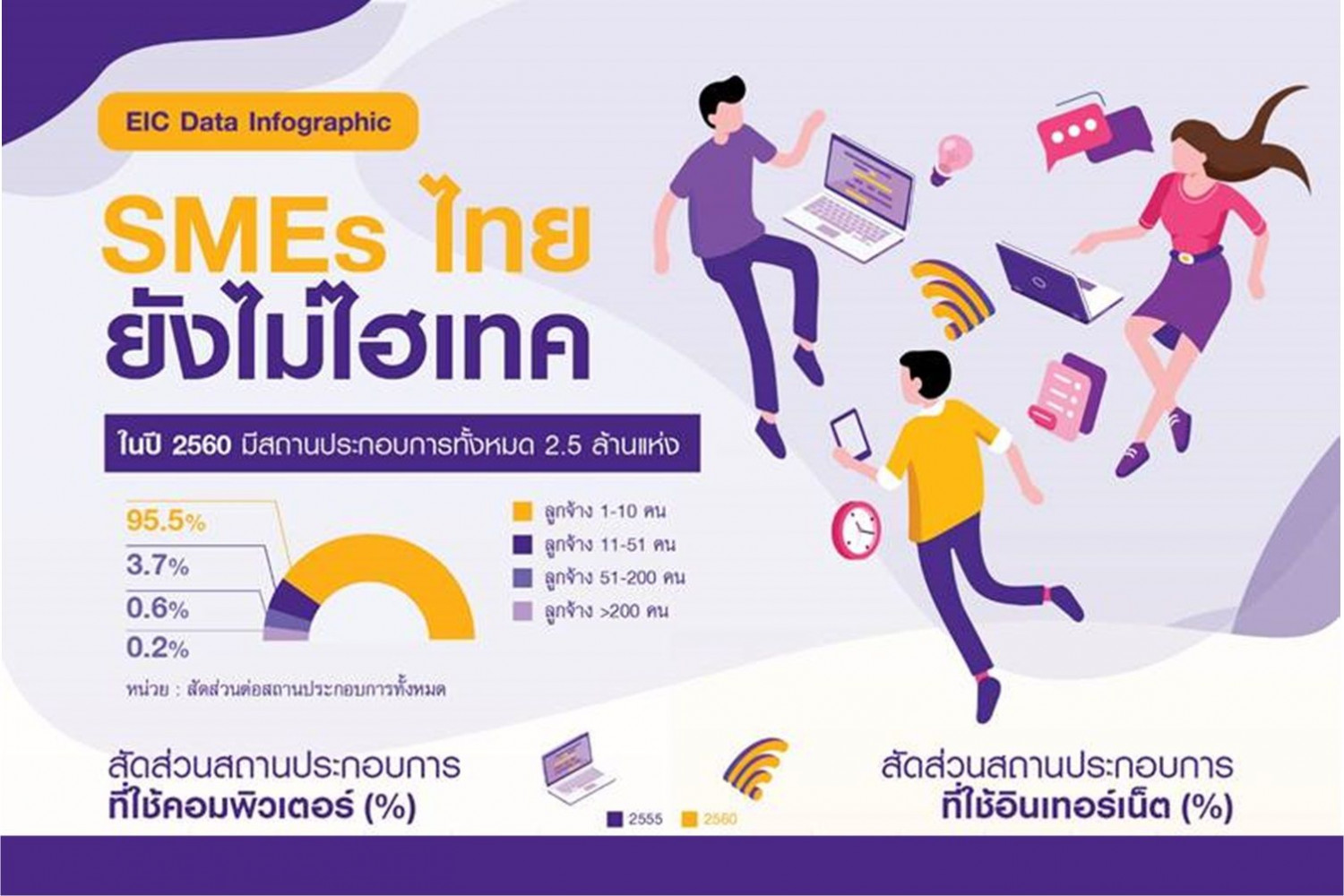 อีไอซี กางข้อมูลระบุ ธุรกิจไทยส่วนใหญ่ยังไม่ใช้คอมพิวเตอร์ ในปี 2560 สัดส่วนสถานประกอบการไทยมีการใช้คอมพิวเตอร์เพียง 28.3% เผยสายงานความต้องการสูง ผู้บริหารเทคโนโลยีสารสนเทศระดับสูง ที่ยังต้องการอีก 1.5 พันตำแหน่ง