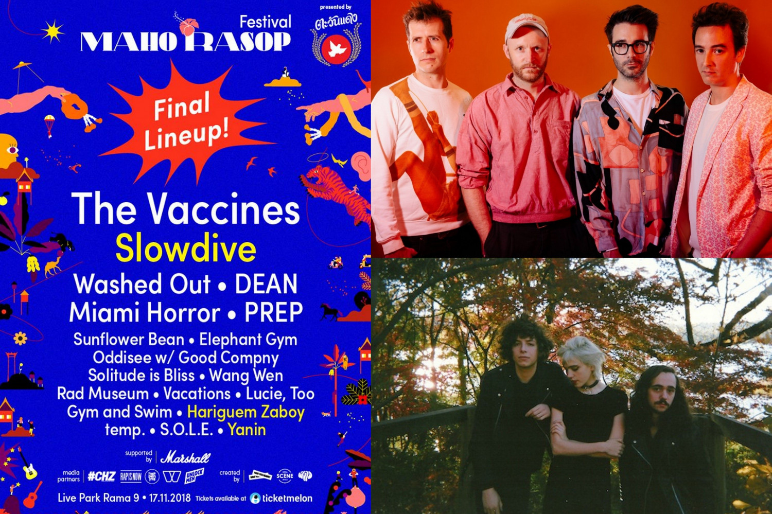 เราจะขอแนะนำวงดนตรีที่เรียกได้ว่าเป็นไฮไลท์ของงานสักหน่อย เริ่มที่ The Vaccines วงร็อคจากอังกฤษที่ก้าวขึ้นมาอยู่ท่ามกลางสปอตไลท์ เจิดจรัสด้วยซาวนด์ร็อคจัดจ้านเฉพาะตัว ริฟฟ์กีต้าร์สุดเร่งเร้าฮอร์โมนพลุ่งพล่านทุกครั้งที่ได้ฟัง จากจุดเริ่มต้นเมื่อปี 2010 เมื่อซิงเกิล “If You Wanna” เริ่มกลายเป็นที่รู้จัก The Vaccines ก็สานต่อกับ 4 สตูดิโออัลบั้ม และสดๆ ร้อนๆ ที่เพิ่งปล่อยออกมาเมื่อต้นปี 2018 กับ Combat Sports กับมวลหมู่เพลงฮิตที่ได้ฟังทีไรก็ต้องกระโดดโลดเต้นตามไป ด้วยความมันอย่าง “I Always Knew”, “Blow It Up”, “Teenage Icon”, “No Hope” และอีกเพียบ อีกทั้งพวกเขายังมีประสบการณ์เคยทัวร์กับศิลปินอย่าง Arctic Monkeys, Red Hot Chili Peppers ฯลฯ รวมไปถึงผ่านเฟสติวัลระดับโลกอย่าง Glastonbury ซึ่งมีกระแสยอดเยี่ยมมาก ทำให้ครั้งนี้ชาวไทยไม่ควรพลาดเป็นอันขาด