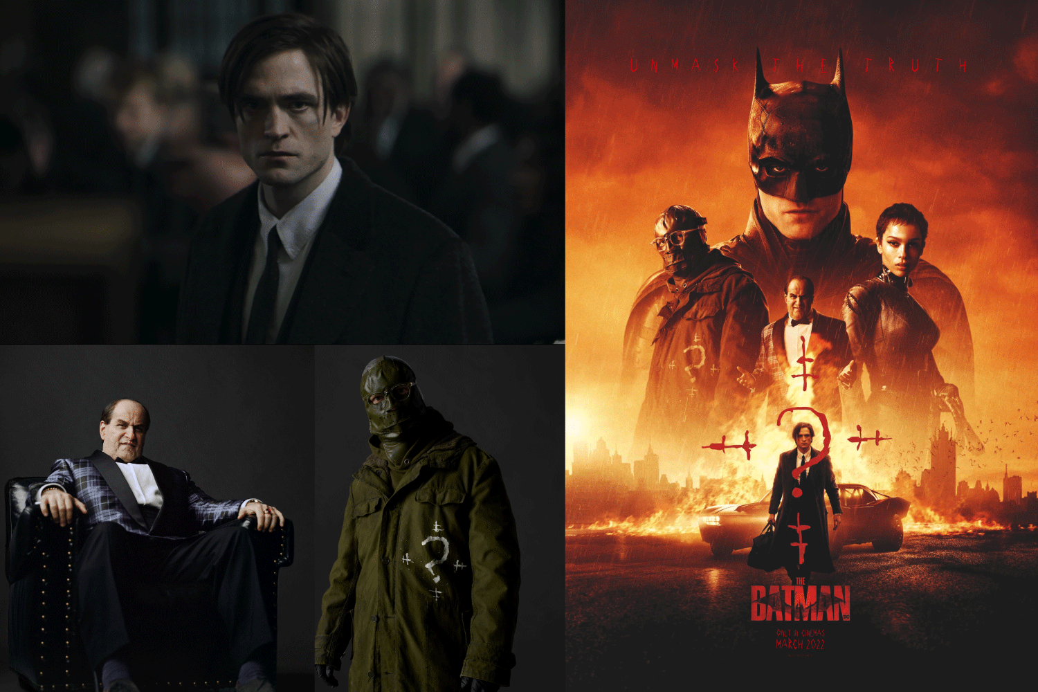 แน่นอนว่าฮีโร่ที่ “เป็นมนุษย์อย่างถึงที่สุด” ไม่สามารถทำทุกอย่างได้ด้วยตัวคนเดียว รีฟส์ไม่ยอมเผยข้อมูลมากเกินไป โดยอธิบายว่าแบทแมนของเขาต้องมาประลองกับวายร้ายโรคจิตอย่างริดเลอร์ผู้โด่งดัง The Batman ได้เหล่าดาราดังมากมายมารับบทเป็นตัวละครหลักในคอมิก โดยแต่ละคนก็มีบทบาทสำคัญในการช่วยเหลือฮีโร่รายนี้ขณะที่เขาพยายามไขปริศนาสุดอันตรายของริดเลอร์ โซอี คราวิทซ์รับบทเป็นเซลินา ไคล์ ซึ่งยังไม่ได้เป็นแคทวูแมนแต่เป็นจอมโจรเจ้าเล่ห์ในร่างแมวป่าที่ชื่นชอบการช่วยเหลือคนหลงทางอย่างบรูซ