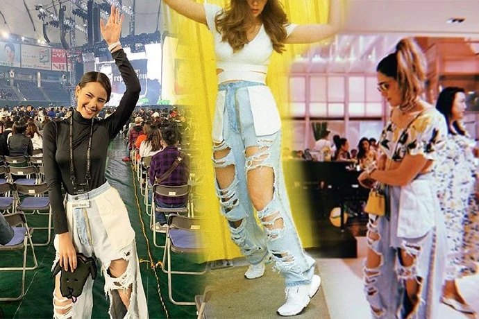 “ชมพู่-ญาญ่า” กับแฟชั่นสุดล้ำ คล้ายใส่กางเกงกลับด้าน มีกระเป๋าออกมาข้างนอก