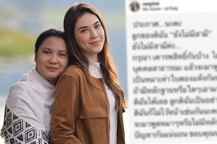 “ประกาศ…นะคะ ลูกของดิฉัน “ยังไม่มีสามี” ยังไม่มีสามีค่ะ กรุณาเคารพสิทธิ์กันบ้างไม่ใช่เป็นบุคคลสาธารณะ แล้วจะมาพูดปากไว เป็นหมาเห่าใบตองแห้งกันนะคะ ถ้ามีหลักฐานใด เอามายืนยันที่ดิฉันได้เลย ลูกดิฉันเป็นอย่างว่าจริง ดิฉันก็ไม่ไว้หน้าเช่นกันนะคะ และถ้าจะมาพูดหมาๆ หรือไม่มีหลักฐาน เรามีปัญหากันแน่นอน ขอบคุณนะคะ” พร้อมเช็คอินตำแหน่งว่าอยู่ที่เขาใหญ่ เพราะสาว “แมท" กำลังไปถ่ายละคร