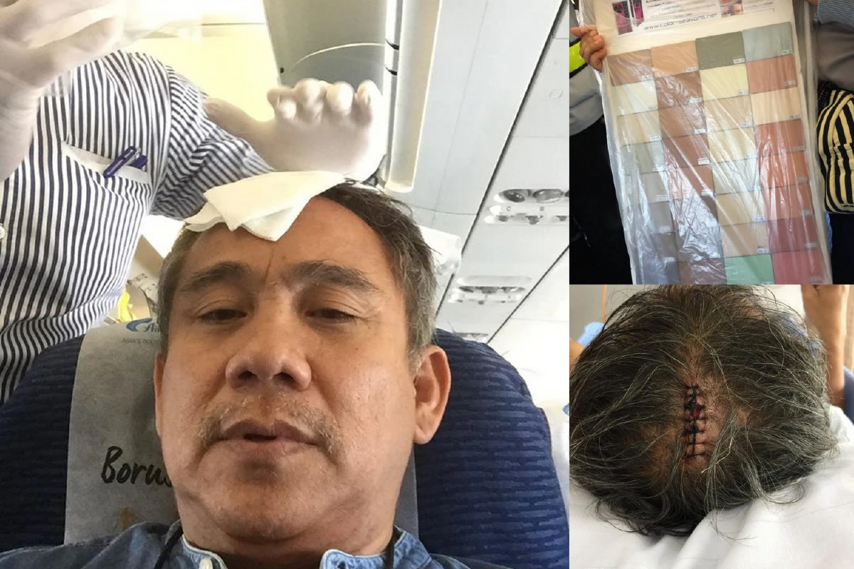 ศุ บุญเลี้ยง โดนกระเบื้องหนัก 4 กก.ตกใส่หัวบนเครื่องบิน บาดเจ็บเย็บ 7 เข็ม