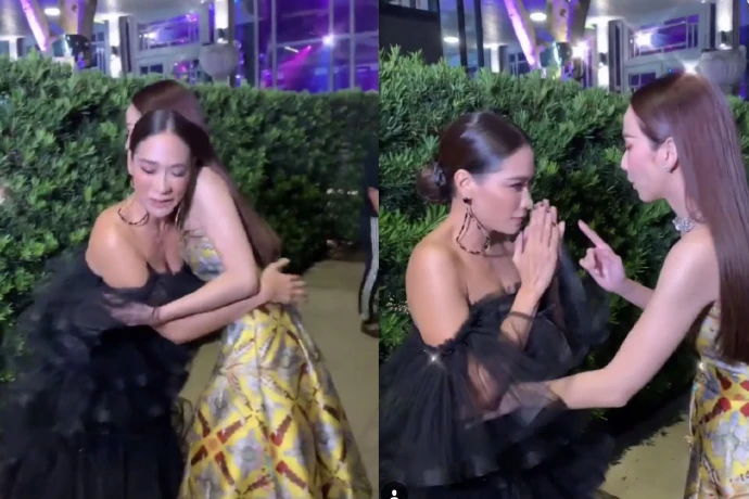 ดูจากท่าทางการชี้และปากแล้ว อั้ม-พลอย น่าจะพูดเรื่องความสวยตามประสาผู้หญิง ใบหน้า ร่องแก้ม หน้าอก หุ่น ฯลฯ ซึ่งเพื่อนดาราเข้ามาคอมเมนต์ในคลิปกันเพียบ คำตอบนี้ถูกต้องนะจ๊ะ!!