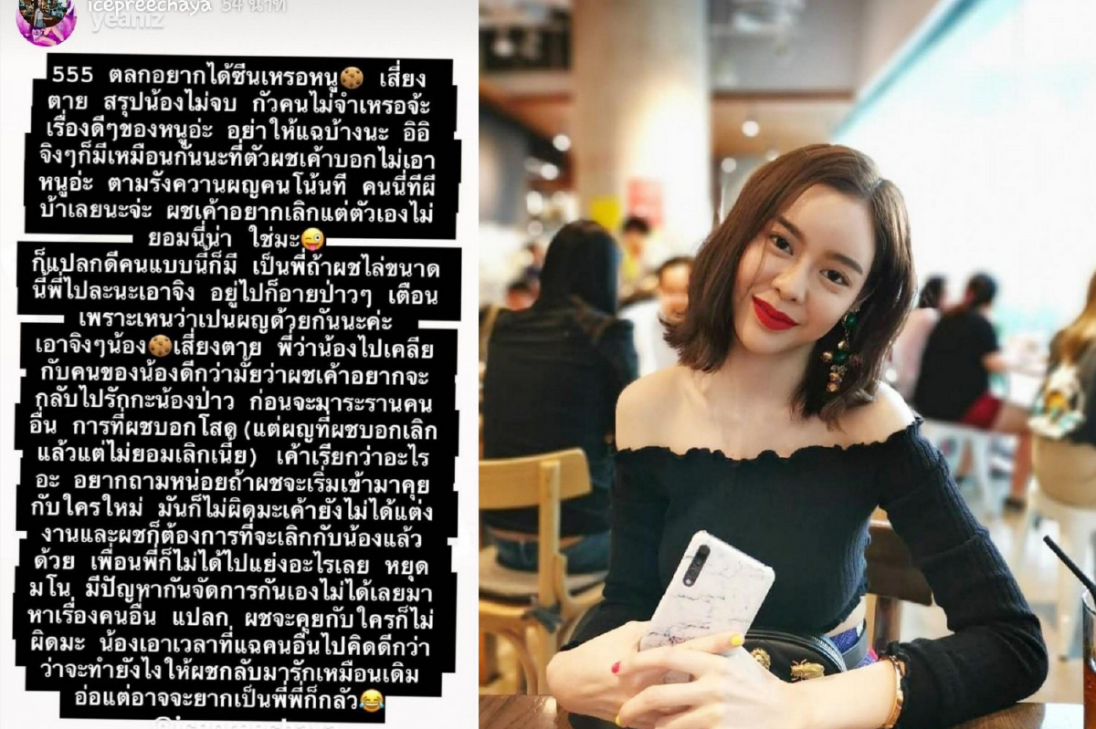 ทั้งนี้สาวไอซ์ได้นำข้อความดังกล่าวมาลงอินสตาแกรมสตอรี่ให้อ่านทั่วกัน ไม่รู้ว่าชัดเจนขนาดนี้น้องคุกกี้เสี่ยงตายจะยอมจบมั้ยย