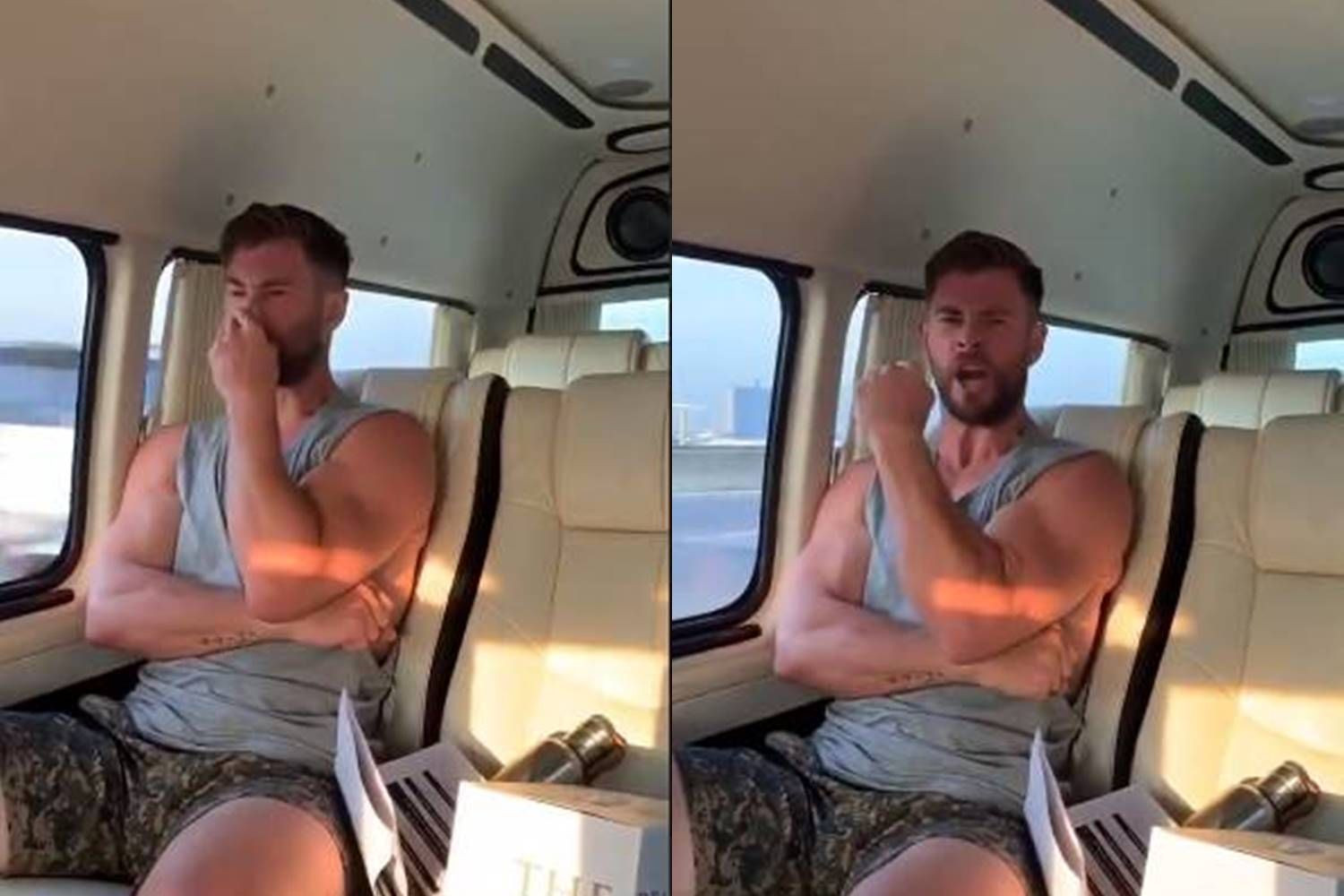 ในคลิปเผยให้เห็น "คริส เฮมส์เวิร์ธ" ที่กำลังหน้านิ่วคิ้วขมวดเมื่อต้องเจอกับการจราจรอันติดขัดบนท้องถนนในกรุงเทพฯ