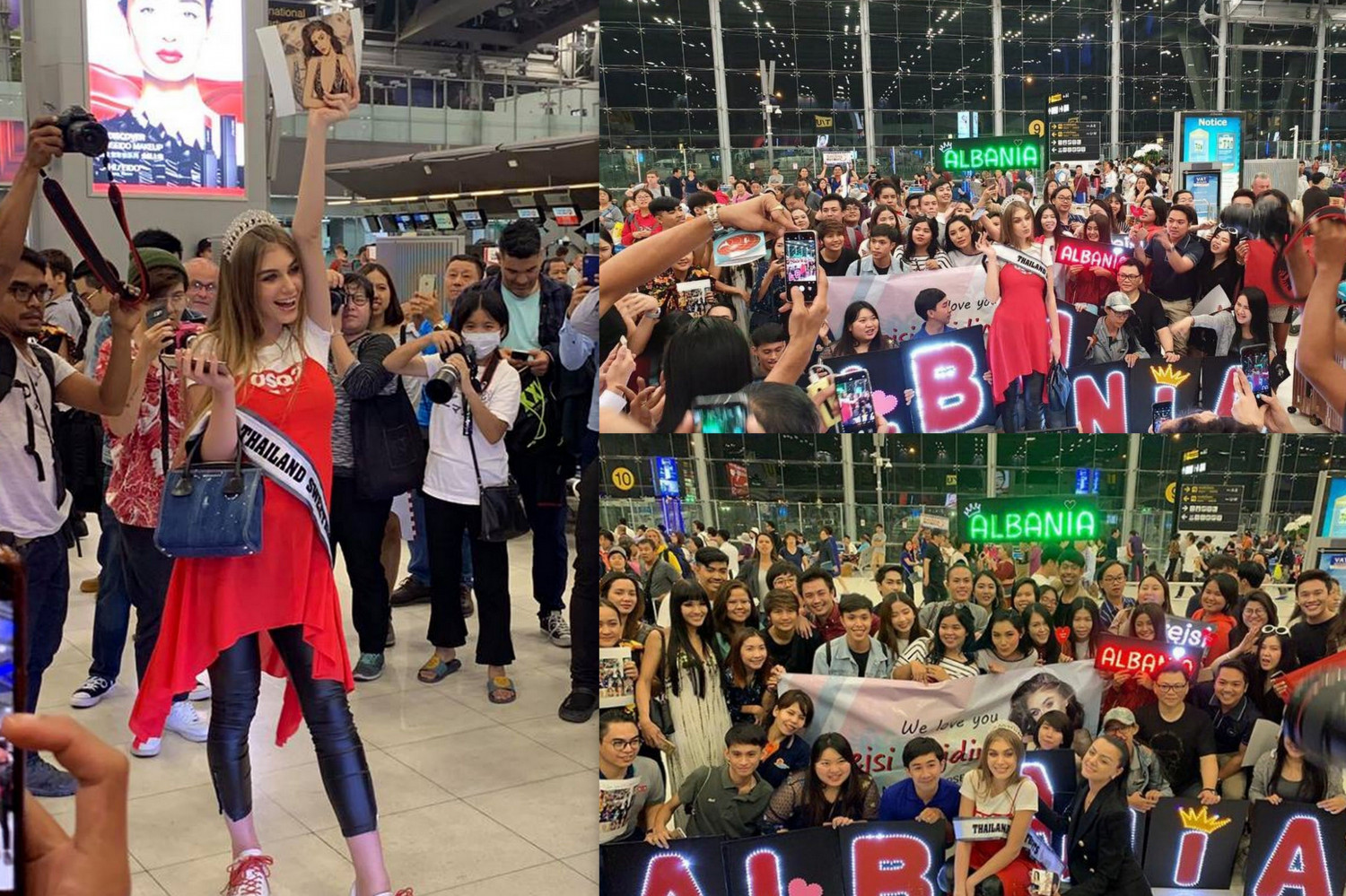 แฟนนางงามรวมตัวส่ง Trejsi Sejdini มิสแอลเบเนีย #ลูกฉันเป็นคนดี กลับบ้านอย่างอบอุ่นที่สนามบิน