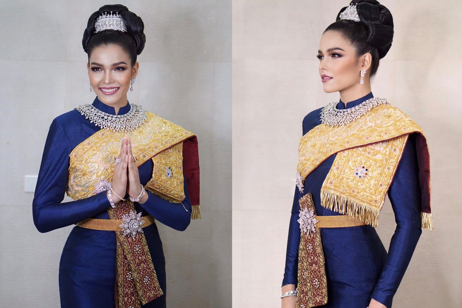 ฟ้าใส ปวีณสุดา นำทีมสาวงาม MUTแต่งสวยด้วยชุดไทยสุดอลังการ ต้อนรับผู้นำอาเซียน