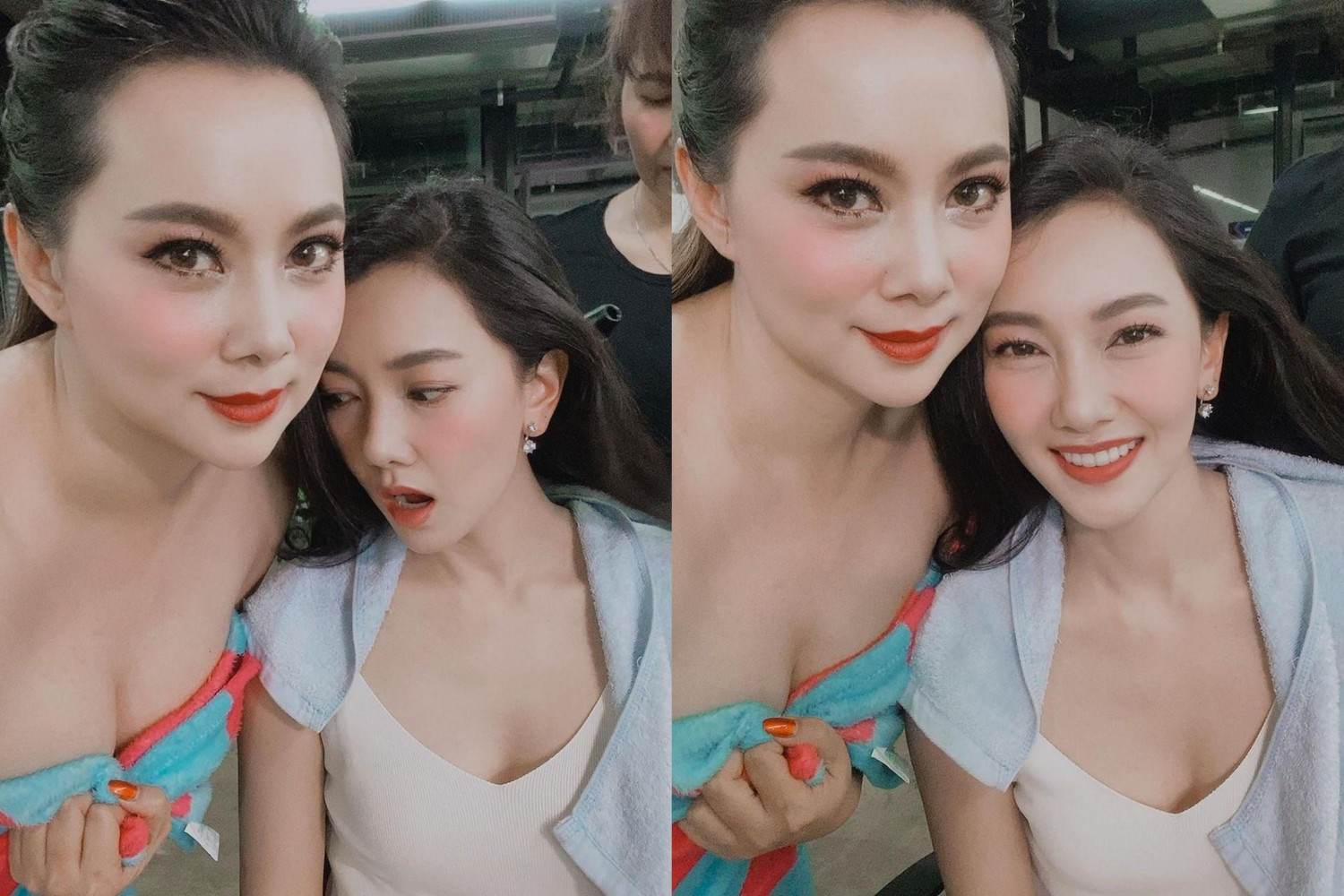 ล่าสุด สาวบุ๋ม โพสต์ภาพเซลฟี่ขณะนุ่งผ้าเช็ดตัวถ่ายคู่กับนางเอกสาวรุ่นน้อง นุ่น วรนุช อวดเนินอกขาวเนียน พร้อมแคปชั่นแซวสาวนุ่นไว้ด้วยว่า "ตกใจอะไรจ๊ะ"