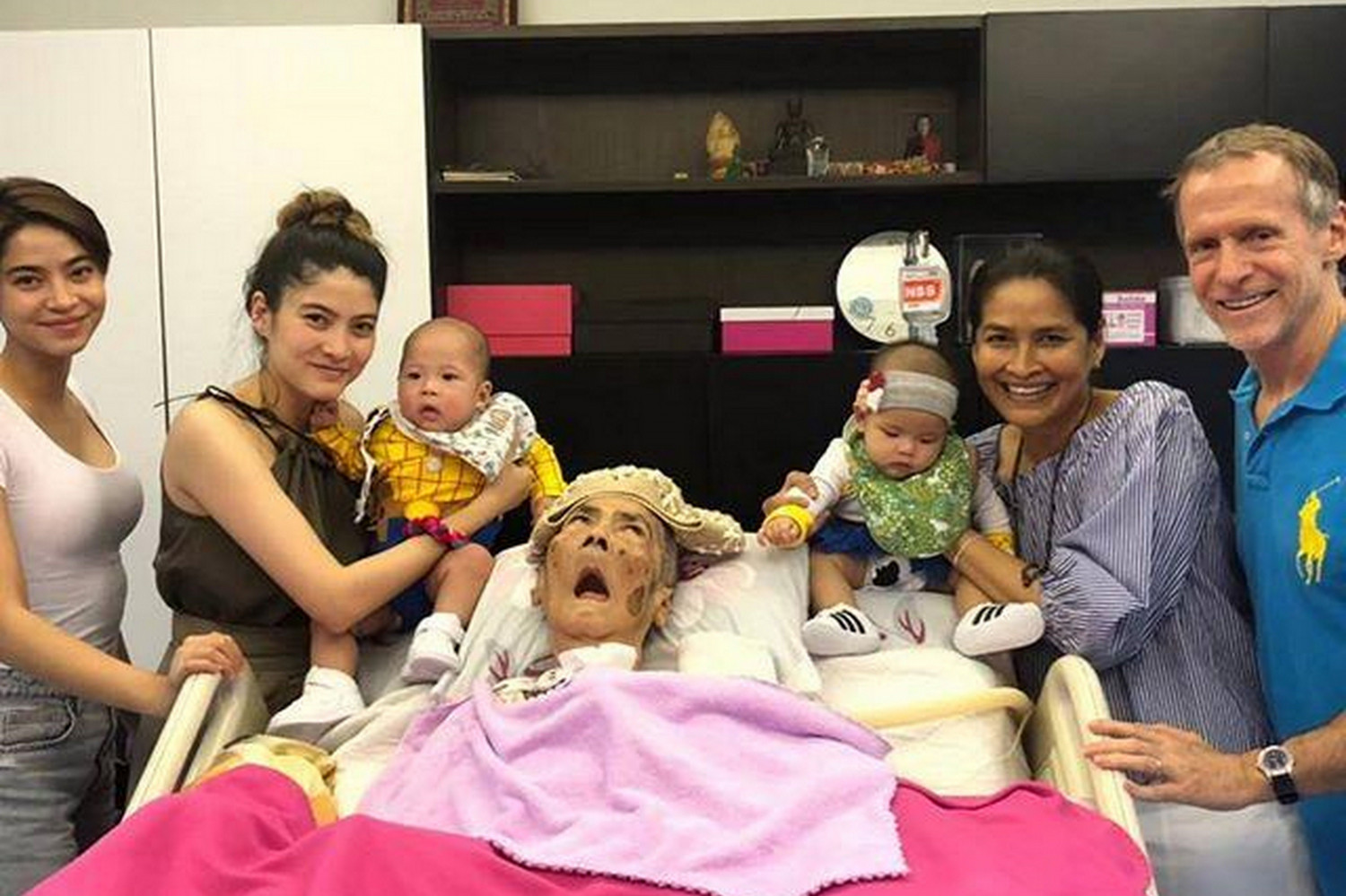 แม่กี้ให้พวกเราหอมคุณยายทวดและสัมผัสคุณยายทวดพวกเราสัมผัสได้ถึงความดีใจของคุณยายทวด!!!!แม่กี้กระซิบที่หูคุณยายทวดว่า”คุณยายวันนี้หนูเอาเหลนชื่อมีก้ากับมีญ่ามาหานะคะที่หนูแต่งงานกับลูกชาย”คุณอภัสสรา”ไงยายตอนนี้คุณยายมีเหลนแล้วนะคะ” ทวดหอมยิ้มเพราะวัยท่านรู้จักคุณอภัสสราและจะชื่นชมมาก!!!