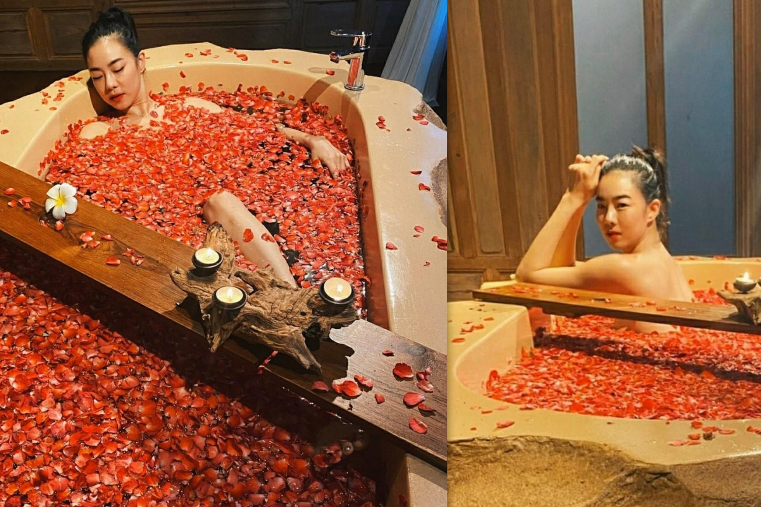 ล่าสุด สาวคริส สลัดผ้าลงแช่อ่างที่โรยไปด้วยกลีบกุหลาบ พร้อมกับโพสท่าสวยๆ อวดความเซ็กซี่แบบเบาๆ ทำเอาหนุ่มเห็นแล้วใจสั่นไปตามกันๆ