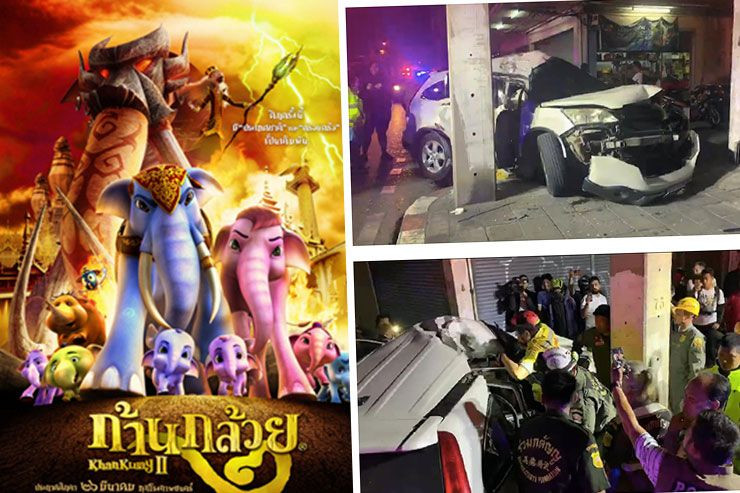 โดยพบว่าผู้ขับรถนั้นเสียชีวิตคาที่ คือ "นายพัชนุ โนรี" อายุ 44 ปี ผู้กำกับฝ่ายศิลป์ภาพยนตร์การ์ตูนเรื่อง ก้านกล้วย เสียชีวิตคาที่ โดยคาดว่าน่าจะรีบขับเพื่อให้ผ่านสี่แยก เพราะไฟเขียวเหลือ 4 วินาที ก่อนรถแหกโค้งชนเสาไฟฟ้า ซึ่งทางเจ้าหน้าที่มูลนิธิร่วมกตัญญู และแพทย์นิติเวช โรงพยาบาลจุฬาได้เข้าตรวจสอบที่เกิดเหตุ ซึ่งสภาพโครงรถด้านขวาพังยับ กันชนหน้าหลุด จนเจ้าหน้าที่ต้องใช้เครื่องตัดเพื่อนำร่างออกมา