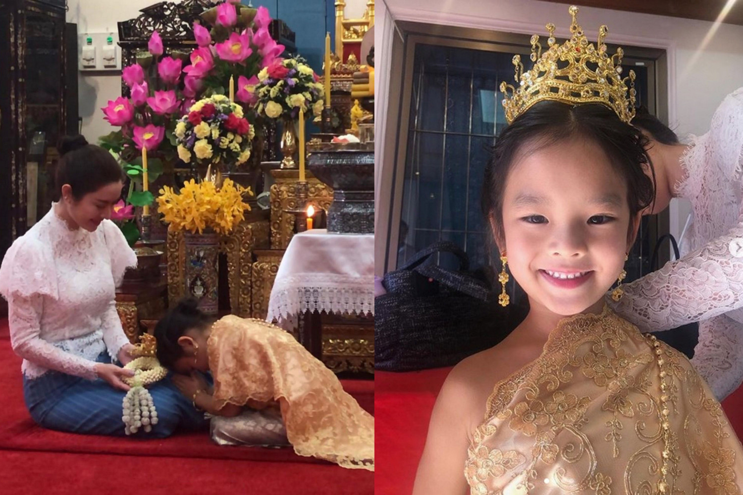น้องปีใหม่ กับเหตุผลที่เลือกใส่ชุดไทยสีทองในวันเกิด พร้อมภาพน่ารักก้มกราบตัก แม่แอฟ