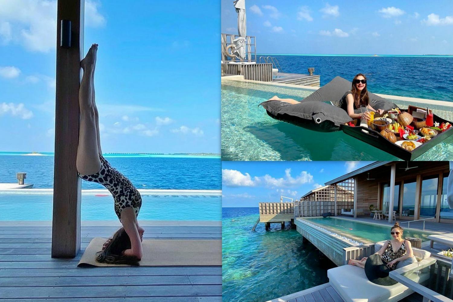 ล่าสุด ทั้งคู่เกี่ยวก้อยกันไปเที่ยวดื่มด่ำอากาศดีๆที่เกาะมัลดีฟส์อีกแล้ว โดยสาวนาตาลี หยิบชุดว่ายน้ำลายเสื้อมาใส่อวดความเซ็กซี่เพิ่มดีกรีความปังด้วยท่าโยคะหกสูง เผยให้เห็นส่วนเว้าโค้งหุ่นดีมากเลยทีเดียว