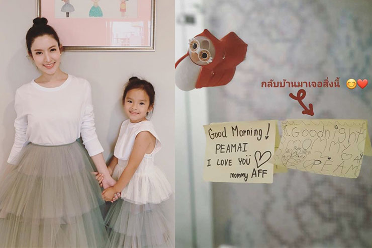 ซึ่งงานนี้ “เเม่แอฟ” ก็ได้เขียนโน้ตตอบกลับลูกสาวว่า “Good Morning Peamai i love you mommy Aff” ทำเอาแฟนๆ ต่างเข้ามาชื่นชมกันเป็นจำนวนมาก
