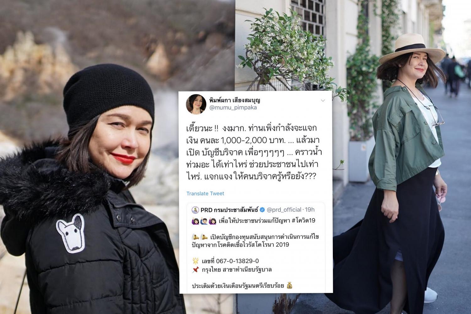 หมู พิมพ์ผกา โพสต์ติงรัฐบาล! ประกาศแจกเงินแต่กลับเปิดรับบริจาคช่วยวิกฤต COVID-19
