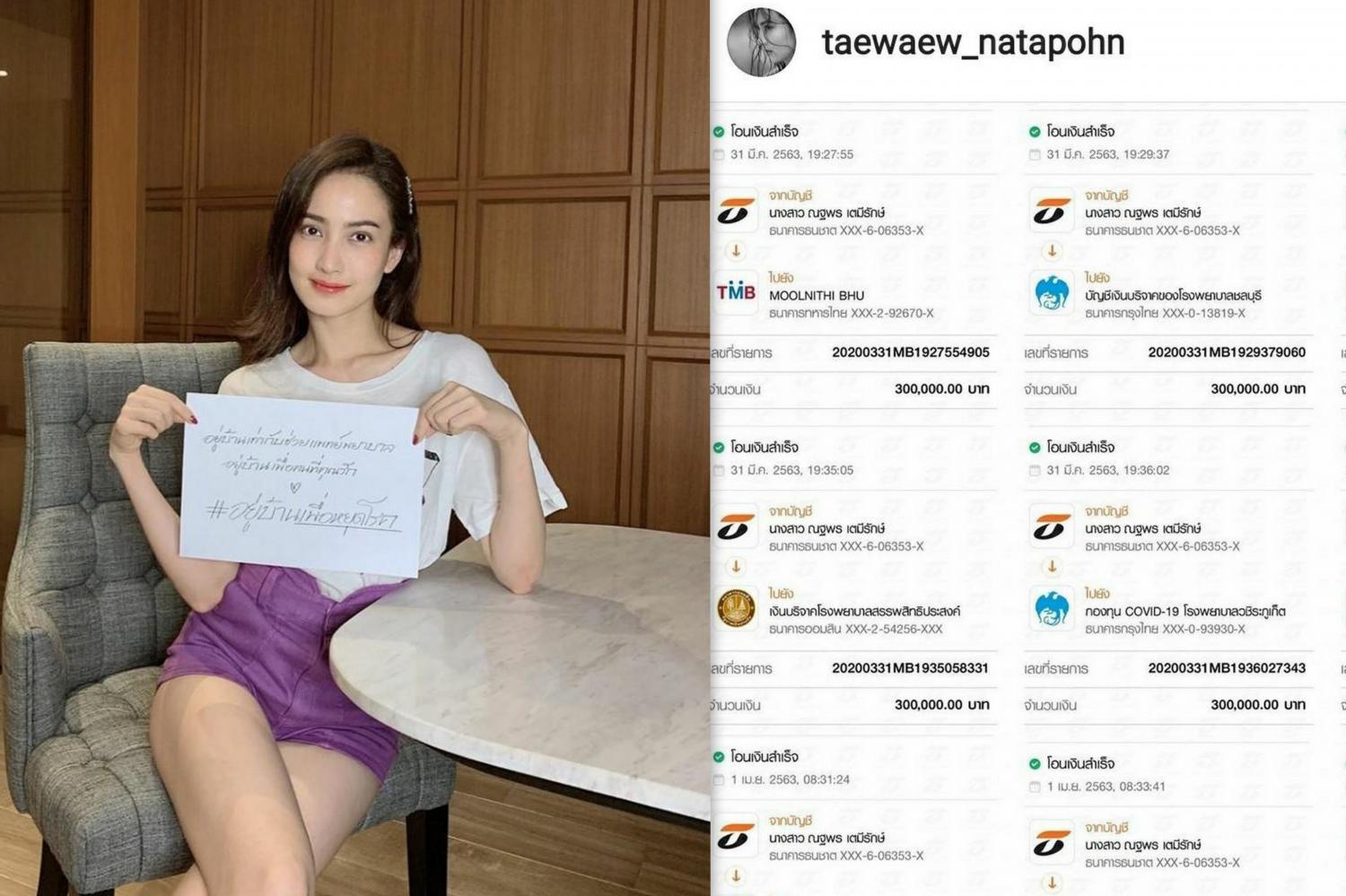 ล่าสุด นางเอกสาวคนสวย แต้ว ณฐพร เตมีรักษ์ บริจาคเงินเพื่อสมทบทุนในการช่วยเหลือค่าใช้จ่ายต่างๆ ให้กับ 11 โรงพยาบาลที่กำลังต่อสู้กับโควิด-19 รวมเป็นจำนวนเงินทั้งสิ้น 3 ล้านบาท พร้อมกับเป็นอีกหนึ่งกำลังใจที่ส่งให้คุณหมอและพยาบาลที่ทำงานหนักทุกคน ระบุข้อความไว้ว่า