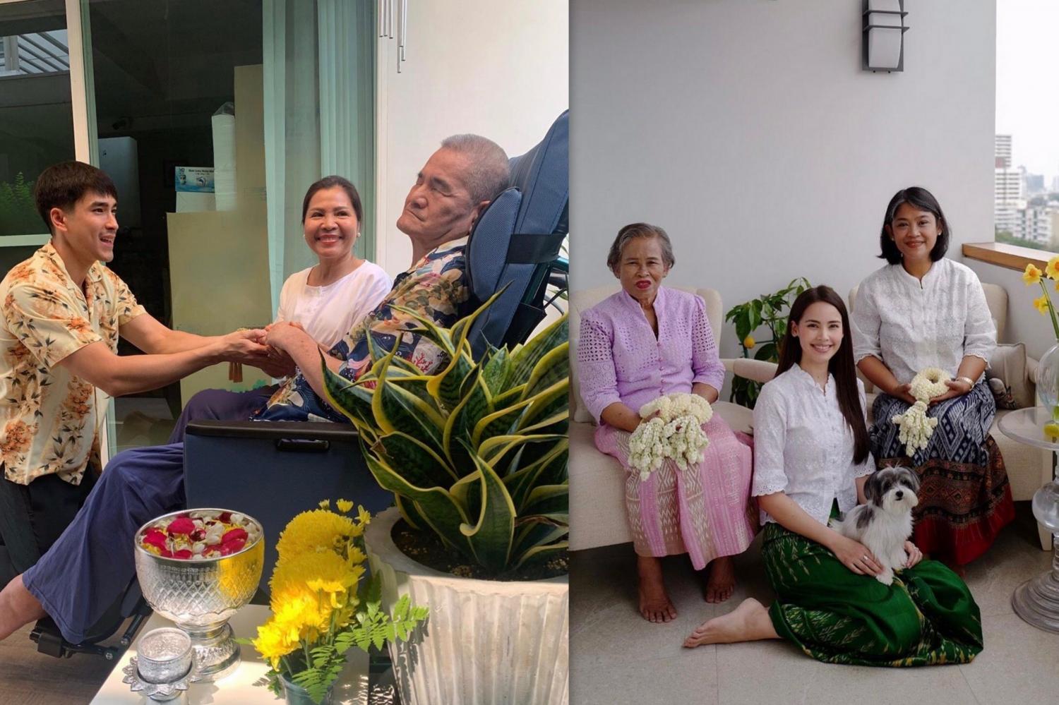 10 ภาพคนดังรดน้ำขอพรผู้ใหญ่ สงกรานต์ปีนี้อยู่บ้านสืบสานประเพณีไทย
