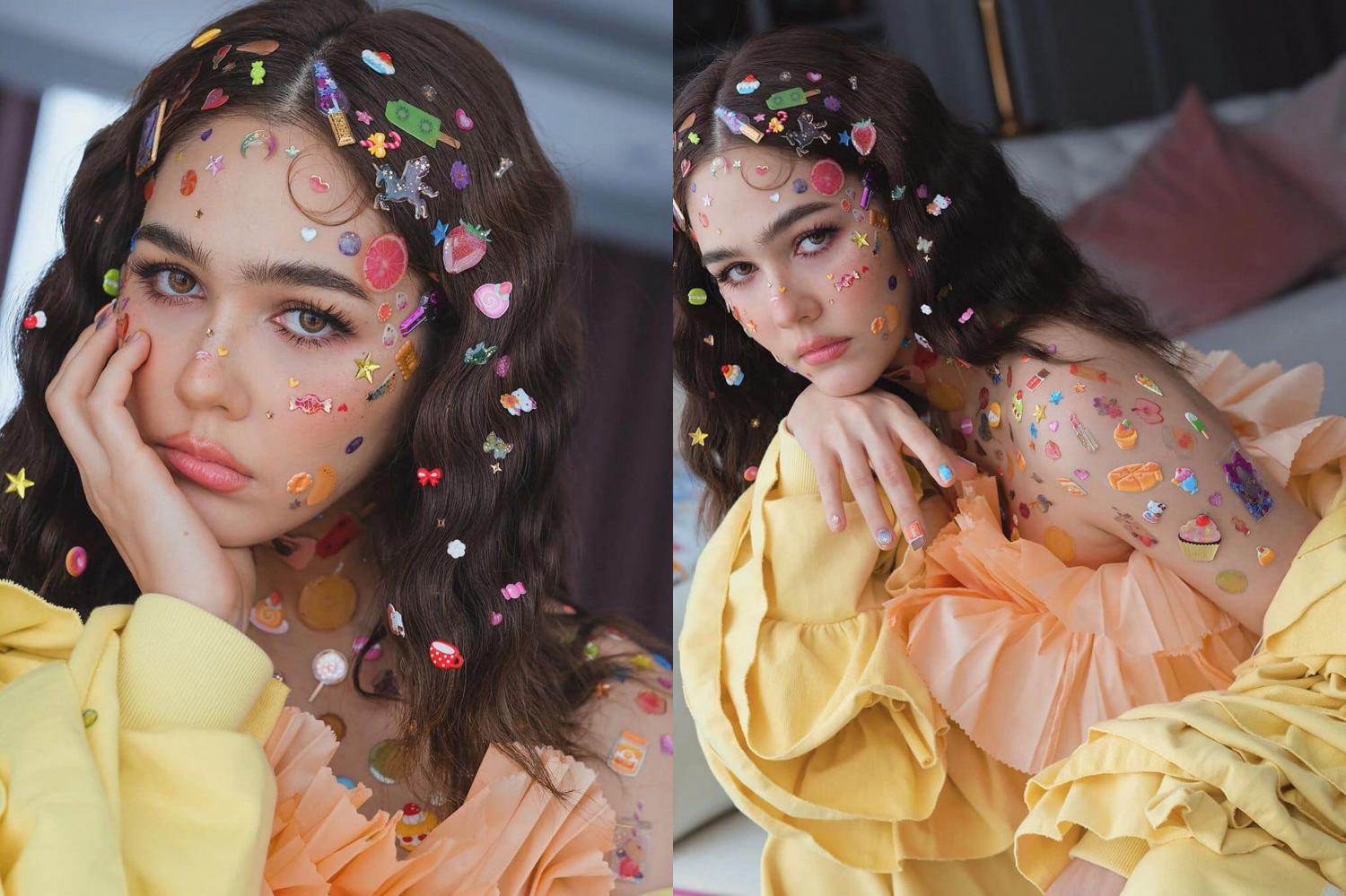 ใครเป็นคนทำ? ชมพู่ อารยา อวดลุคสวยแสนเก๋ นำเทรนด์ติดสติกเกอร์เต็มหน้า