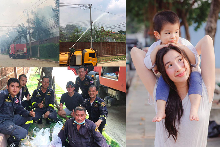 ขอบพระคุณเจ้าหน้าที่ดับเพลิงบางเขน และเจ้าหน้าที่กทม.เขตสายไหม ที่เข้ามาช่วยดูแลประสานงานดับเพลิงให้พวกเราทุกคนอุ่นใจ วิ่งเข้าๆออกๆมา3-4วันเต็มๆ พี่ๆทุกคนต้องเสี่ยงอันตรายมากๆ พวกเราชาวหมู่บ้านขอขอบพระคุณพี่ๆเจ้าหน้าที่ทุกคนมากนะคะ พวกเรานอนหลับเพราะพี่ๆเลยค่ะ (ps: ชาวหมู่บ้านก็น่ารักมากๆค่ะ ช่วยส่งน้ำส่งอาหารมาให้พี่ๆดับเพลิงเยอะแยะเลย หมู่บ้านเราต้องปลอดภัย สู้ๆ)” ซึ่งงานนี้ก็ทั้งเพื่อนๆ ในวงการและแฟนคลับเข้ามาส่งกำลังใจกันเพียบ