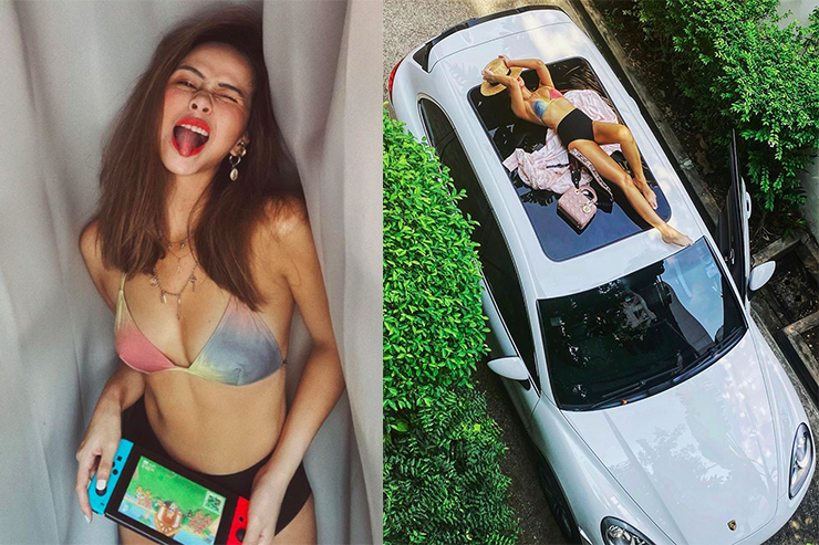 ร้อนแรงแข่งกับอากาศ! “พลอย ชวพร” นุ่งบิกินี่อาบแดดบนหลังคารถ