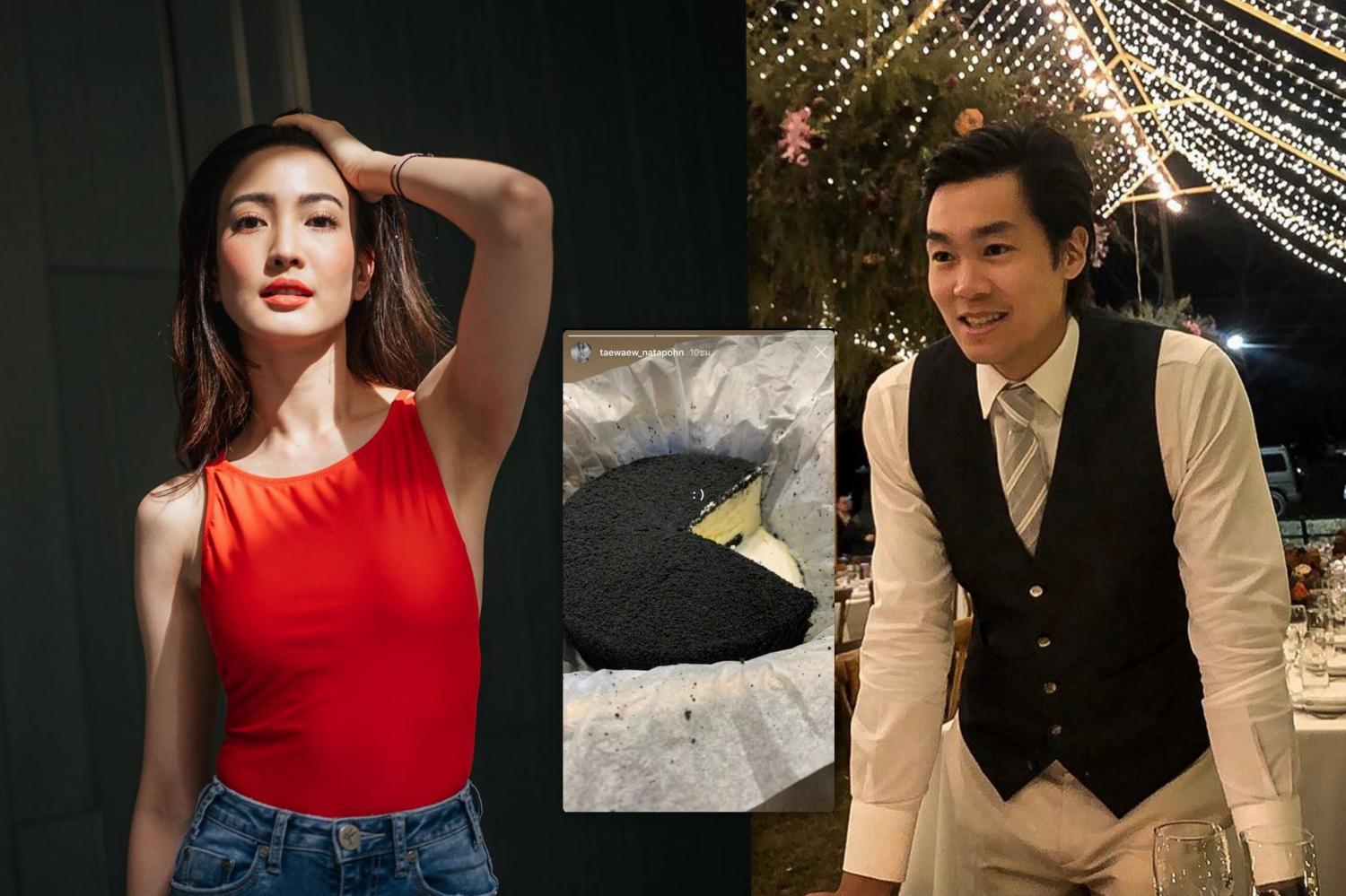 งานนี้ แต้ว ณฐพร และ ไฮโซณัย ได้โพสต์ไอจีสตอรี่ลงภาพเค้กสีดำที่มีรูปร่างเหมือนกันแบบเป๊ะ ๆ ทำเอาหลายคนเดาว่าจะเป็นก้อนเดียวกันหรือเปล่า หรืออาจจะเป็นเค้กเจ้าอร่อยที่สั่งมาทานวันเดียวกันก็ได้
