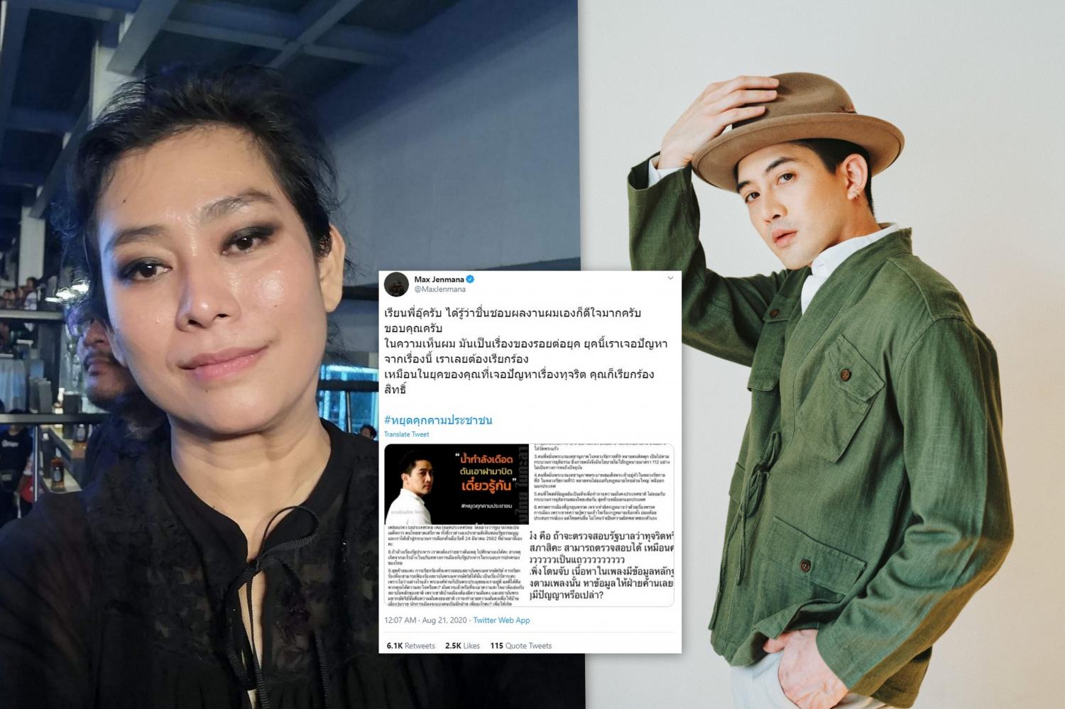 แม็กซ์ เจนมานะ โต้กลับ อุ๊ หฤทัย หลังโพสต์ยาวเหยียด..ย่ำยีหัวใจคนไทยเพื่อให้คนในชาติแตกแยก สรุปใครคุกคามใครคะ?