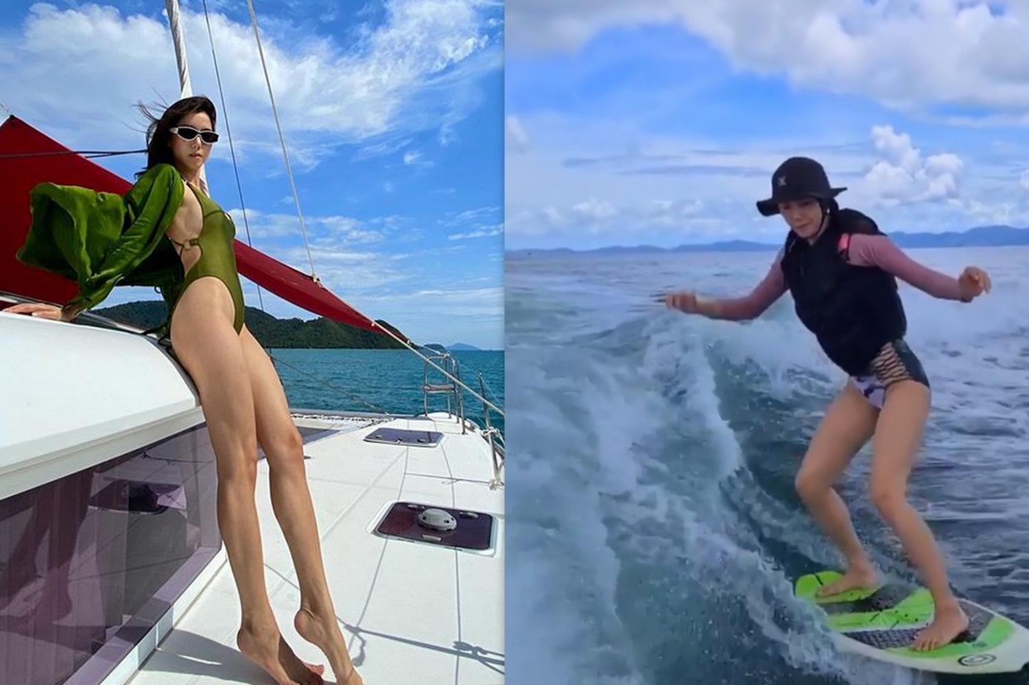 สวยเท่ไม่เบา! ไอซ์ อภิษฎา เล่นเซิร์ฟบอร์ดอวดลีลาสุดพลิ้วโต้คลื่นกลางทะเล