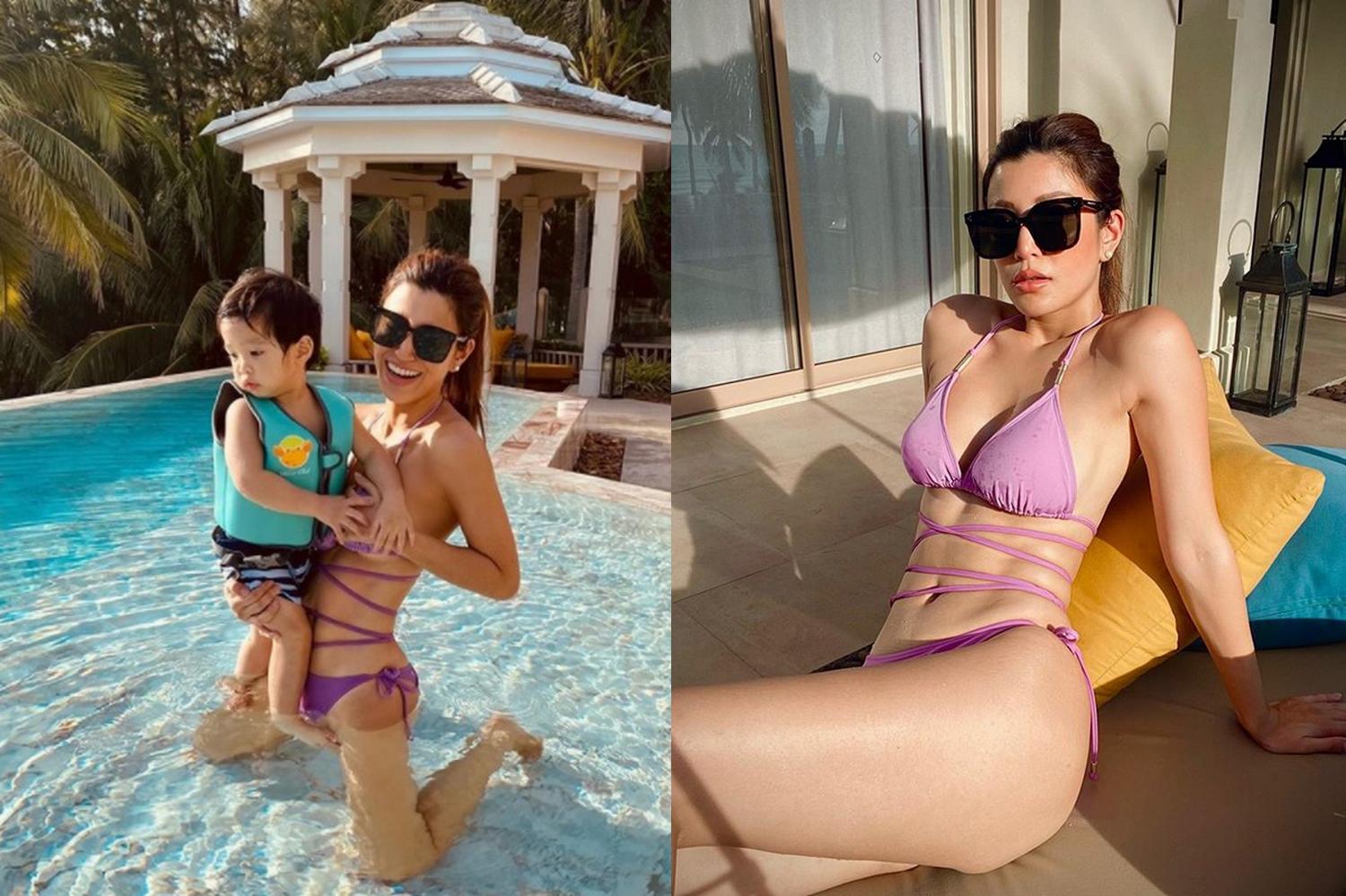 ล่าสุด สาวเอมมี่ เดินทางไปเที่ยวทะเลอีกแล้วกับสามีสุดที่รัก เจมส์ จิรายุทธ และลูกชาย น้องสายน้ำ งานนี้แม่ก็คือแม่ ปล่อยภาพเซ็กซี่ในชุดว่ายน้ำสีม่วงพาสเทลสีหวานอวดหุ่นแซ่บเอวเอส กล้ามท้องแน่น ก้นเด้ง
