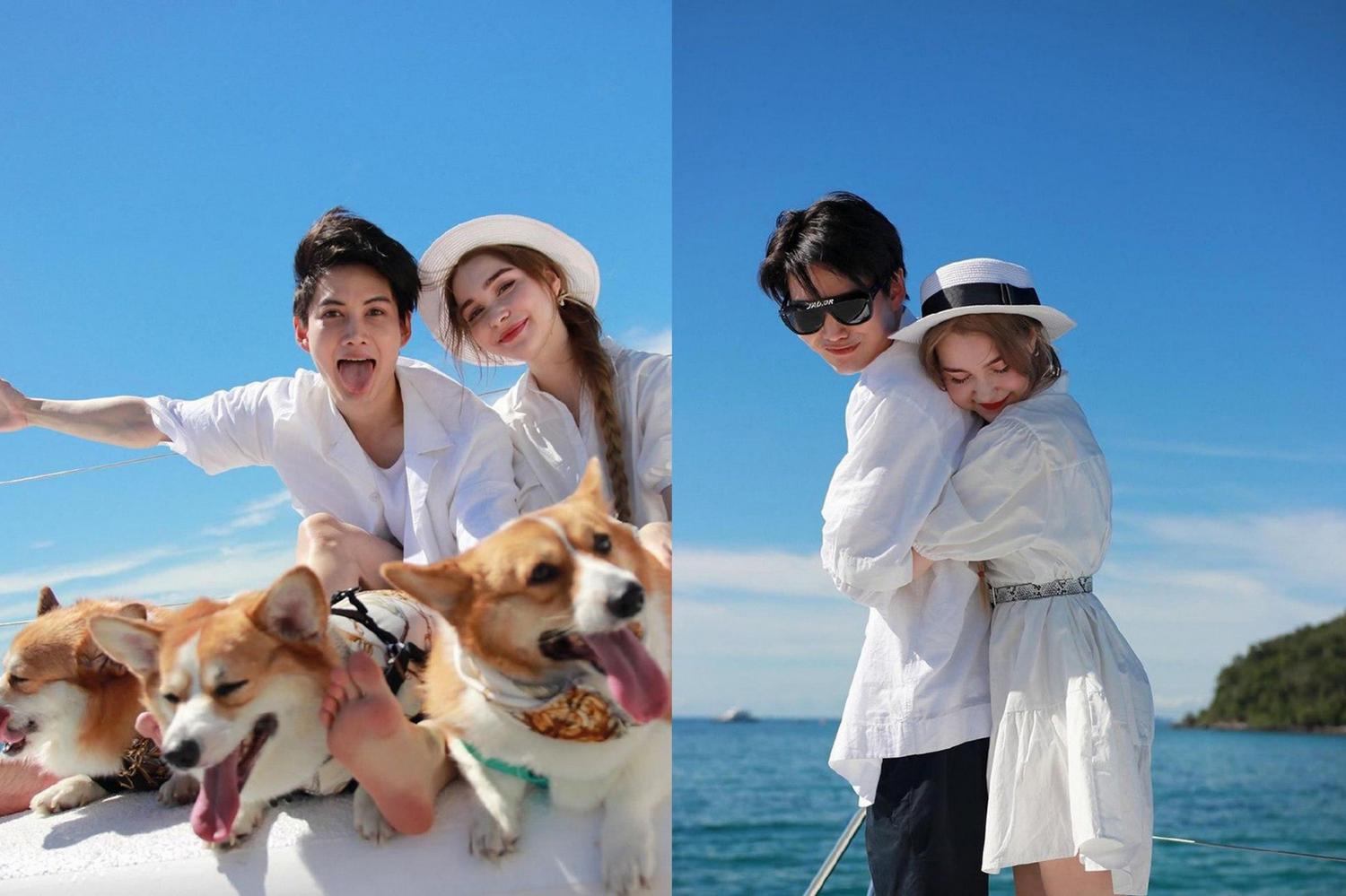 กอล์ฟ พิชญะ จุ๊บหวานโชว์สวีทกลางทะเลกับแฟนสาว โดยมีแก๊งน้องหมาคอร์กี้เป็นพยานรัก