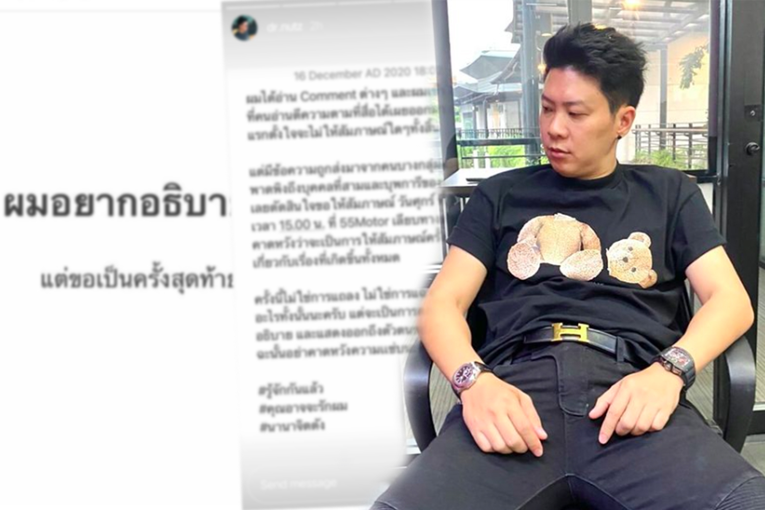 ผมเลยตัดสินใจขอให้สัมภาษณ์ วันศุกร์ที่ 18 ธันวาคม นี้ เวลา 15.00 น. ที่ 55Motor เลียบทางด่วน และคาดหวังว่าจะเป็นการให้สัมภาษณ์ครั้งสุดท้ายเกี่ยวกับเรื่องที่เกิดขึ้นทั้งหมด ครั้งนี้ไม่ใช่การแถลง ไม่ใช่การแฉ แหก แดกดันอะไรทั้งนั้นนะครับ แต่จะเป็นการตอบคำถามและอธิบาย แสดงออกถึงตัวตนของผมจริง ๆ ฉะนั้นอย่าคาดหวังความแซ่บนะครับ รู้จักกันแล้วคุณอาจจะรักผม นานาจิตตัง"
